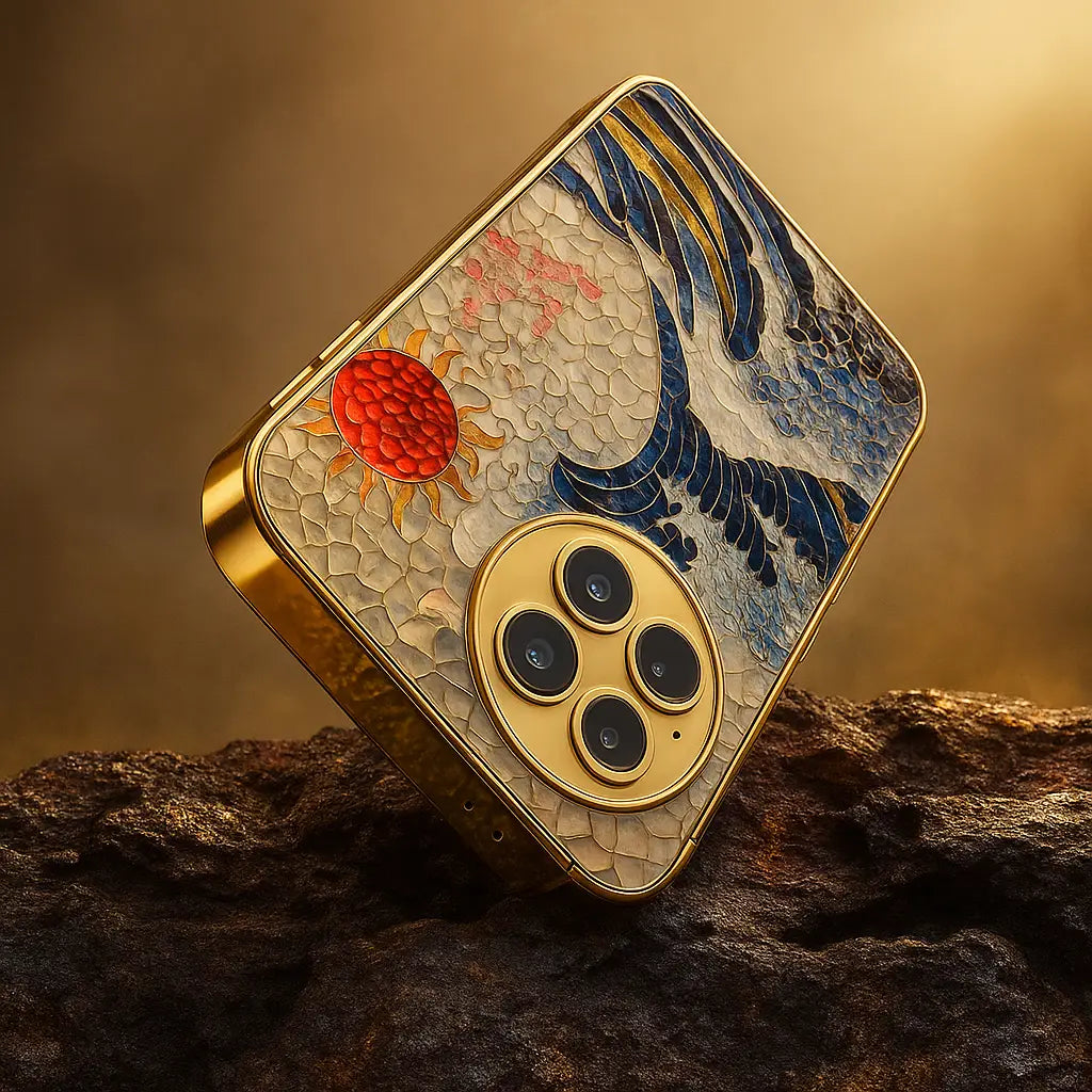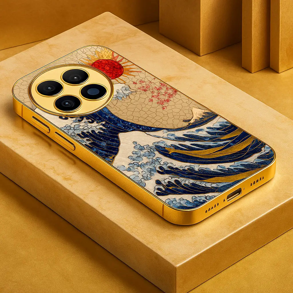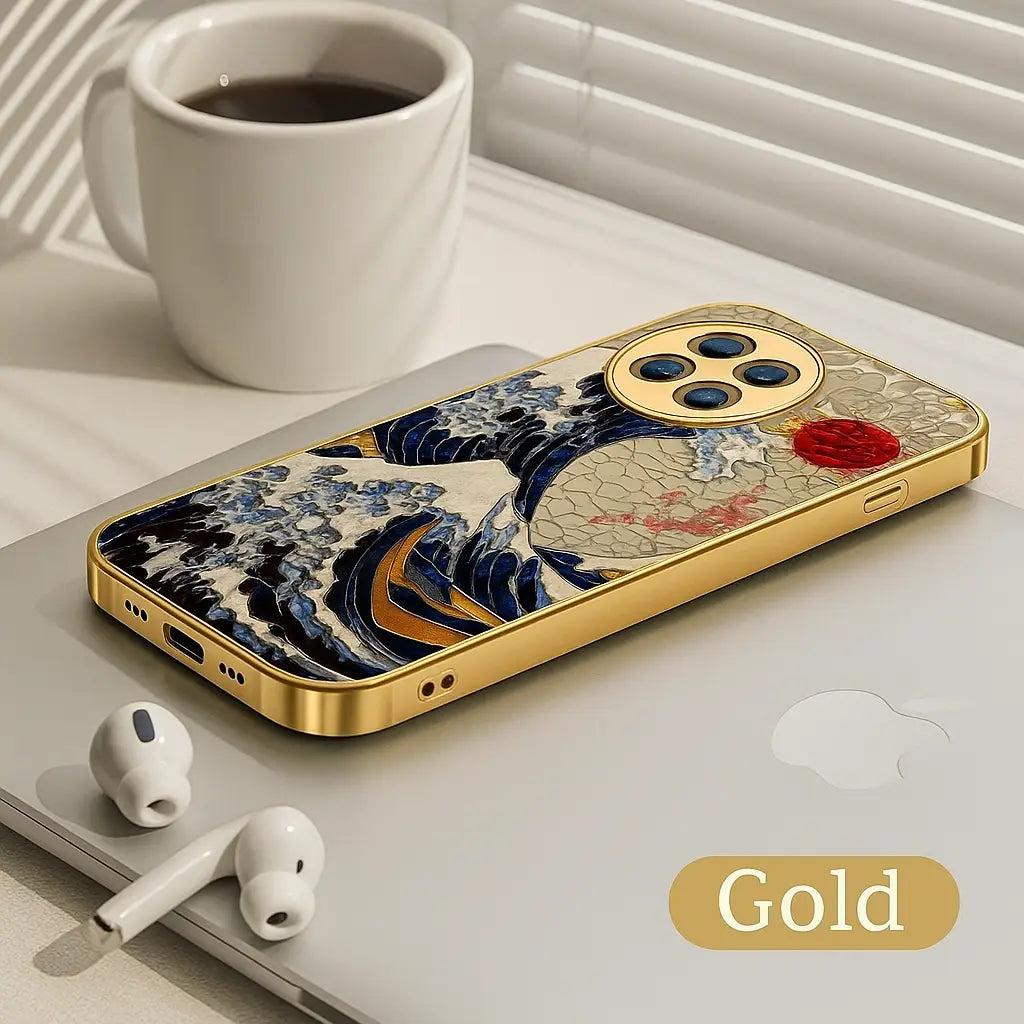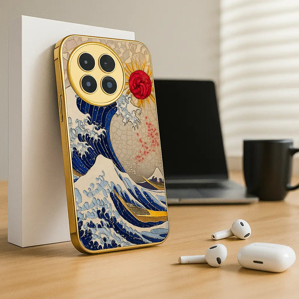 Inspired by the legendary Great Wave off Kanagawa, Shattered Sea reimagines the iconic scene through a mosaic lens — where each fragment reflects the chaos and beauty of nature. With deep indigo waves crashing beneath a radiant crimson sun, this case tells a story of motion, energy, and timeless art.