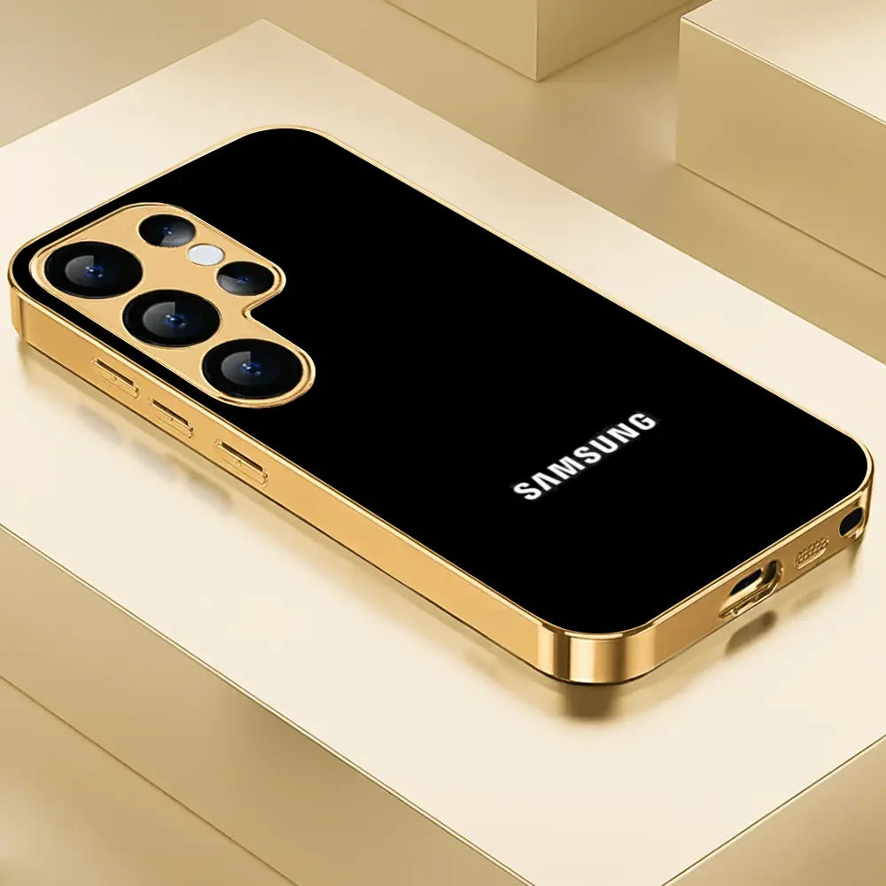 Embrace sophistication with the Luxury Veil Case, a perfect fusion of elegance and modern design. The glossy black finish paired with its golden electroplated frame creates a striking, high-end look that radiates luxury. Crafted with precision, it offers complete protection while maintaining a sleek, lightweight profile.