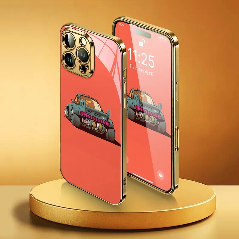 Fuel your feed with street-style energy. Rocket Rider pops with a glossy coral backdrop and a bold, cartoon turbo car blasting forward—neon accents, chunky tires, and rocket pipes for maximum attitude. Chrome-clean edges finish the look while your phone stays protected mile after mile.
