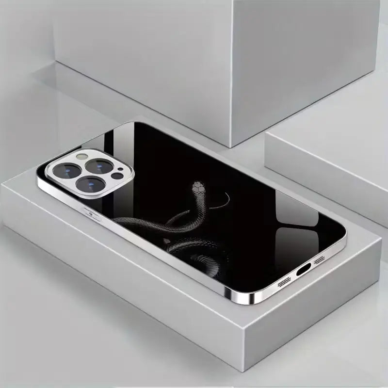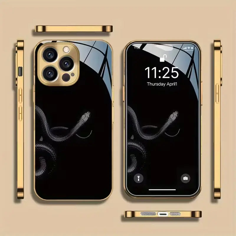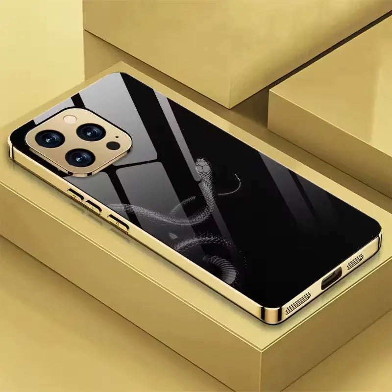 Command sleek luxury with the Royal Viper Case. A deep obsidian back showcases a stealth cobra motif that shimmers under light, framed by a rich, gold-tone bezel. It’s refined, dangerous, and built to protect—premium style without the bulk.
