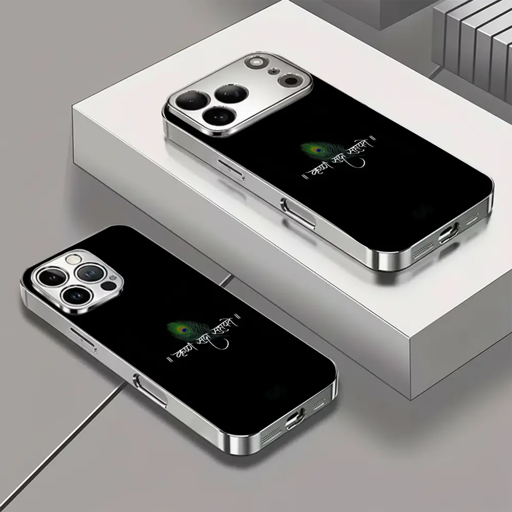 Experience divinity in every glance with the Krishna Script Aura case, designed for those who carry faith close to their heart. Featuring a minimal yet powerful black background, this case showcases an elegant Hindi Krishna script adorned with a beautifully detailed peacock feather—the timeless symbol of Lord Krishna’s grace, charm, and wisdom.