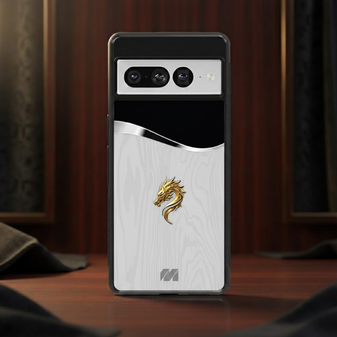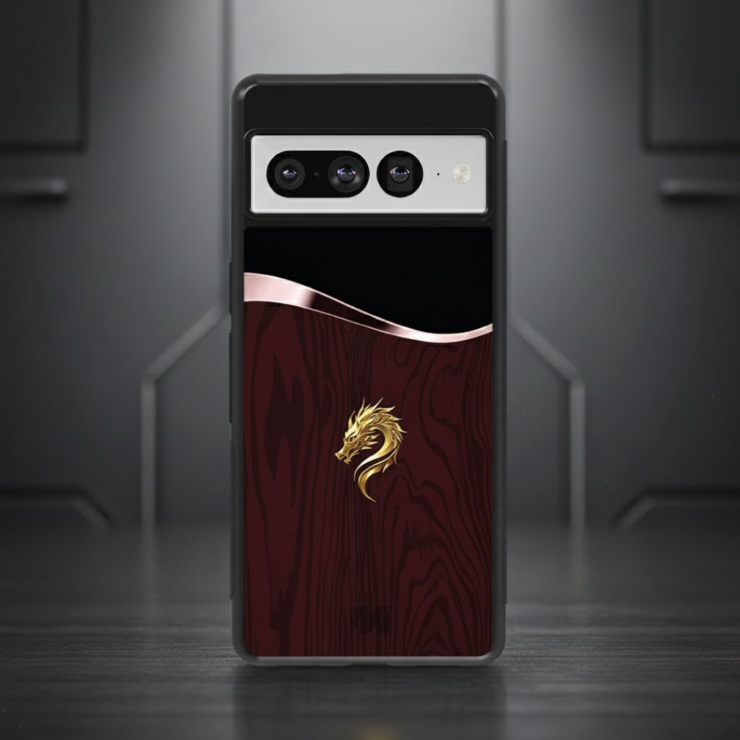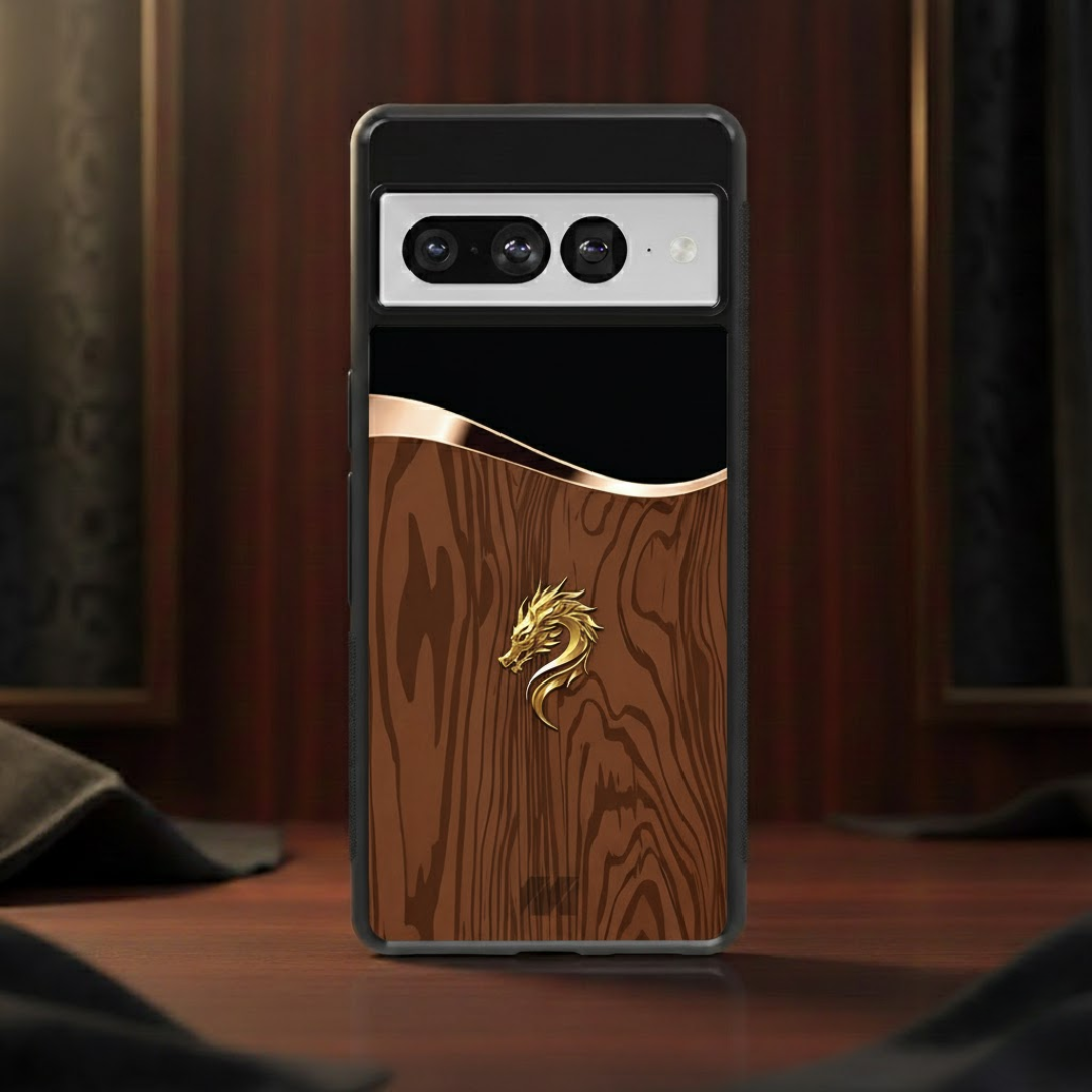 The Dynasty Dragonwood case fuses ancient power with modern luxury, featuring a deep wood-grain finish crowned by a striking golden dragon emblem. Inspired by imperial craftsmanship, this design symbolizes strength, prosperity, and timeless authority. The glossy surface enhances the rich tones of the wood texture, while the metallic dragon detail adds a bold, regal accent that commands attention.