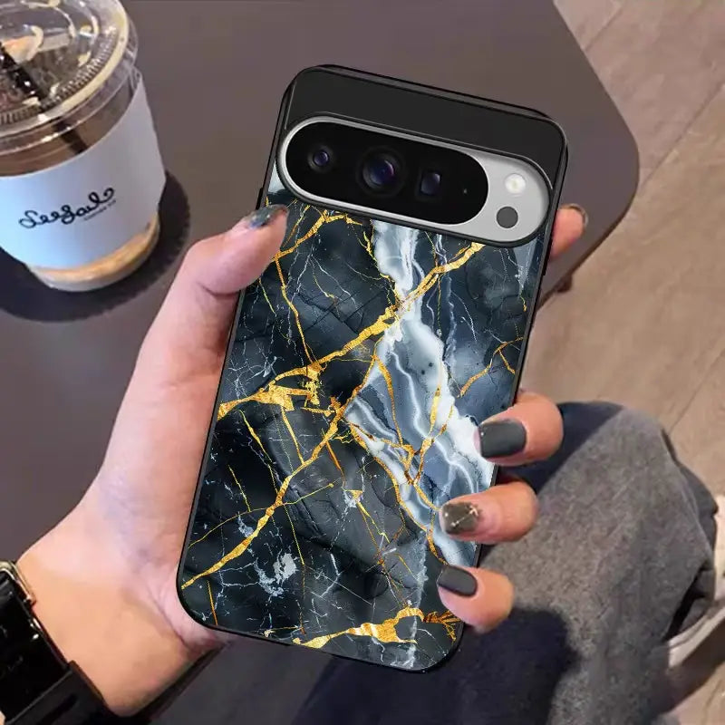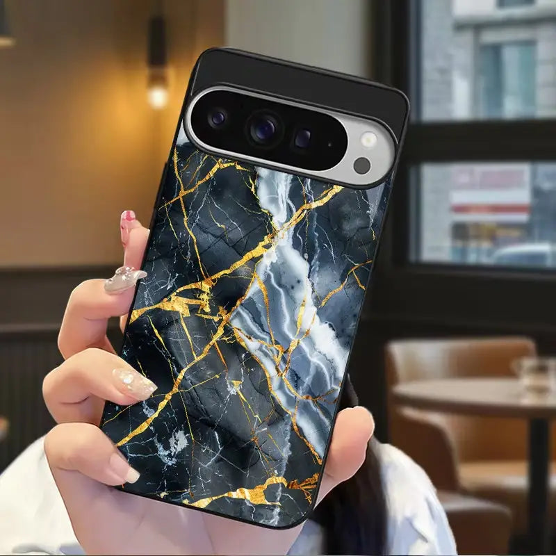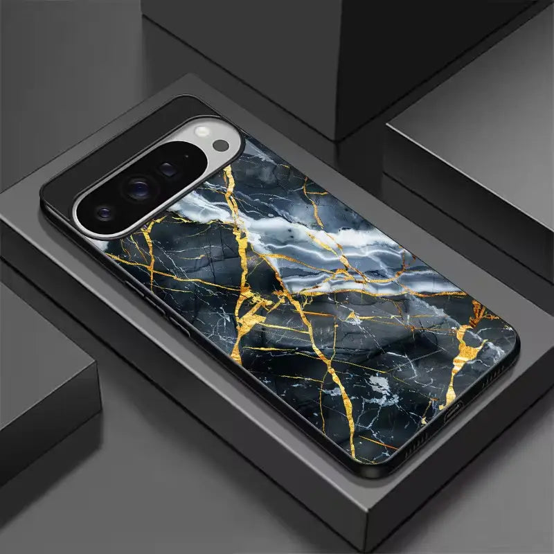 Luster Cracks Case draws inspiration from fractured stone traced with molten gold. Bold black marble textures meet radiant metallic veins, symbolizing strength forged through imperfection. The design balances raw energy with refined luxury—where every crack reflects resilience, depth, and unmistakable elegance.