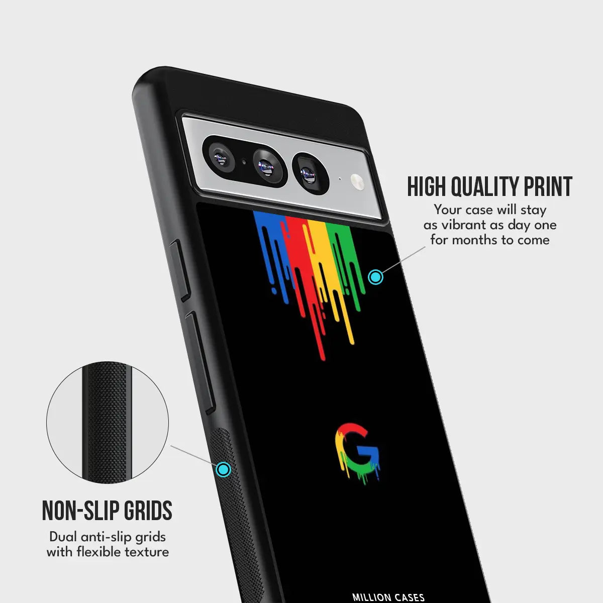 Bring bold energy and modern artistry to your Pixel with the Spectrum Splash case. Designed with a deep black backdrop that makes every color pop, this case showcases Google’s signature hues flowing in a striking drip-art style.