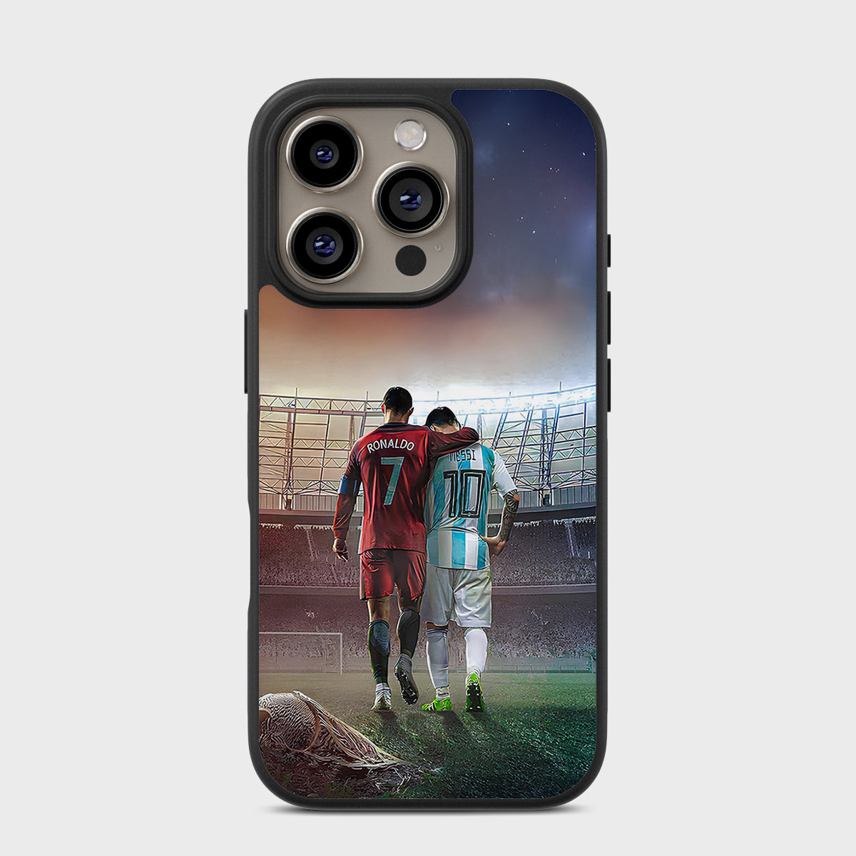 Aftergame Friends Case captures the quiet moment after the roar fades—where rivalry gives way to respect. Featuring two legends walking side by side after the final whistle, this design celebrates sportsmanship, shared journeys, and the bond formed through competition.