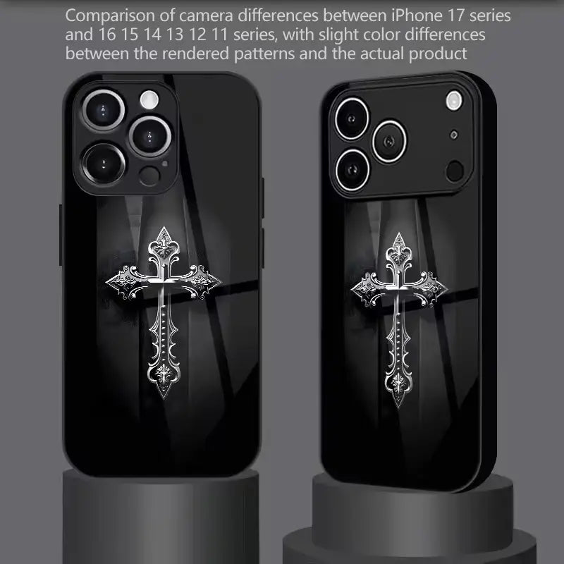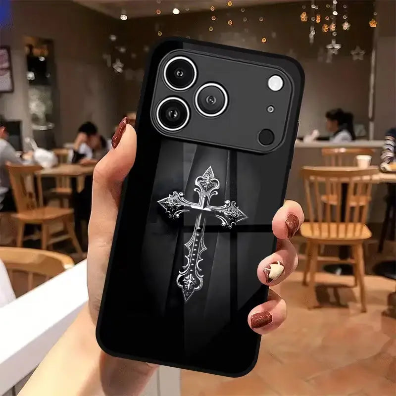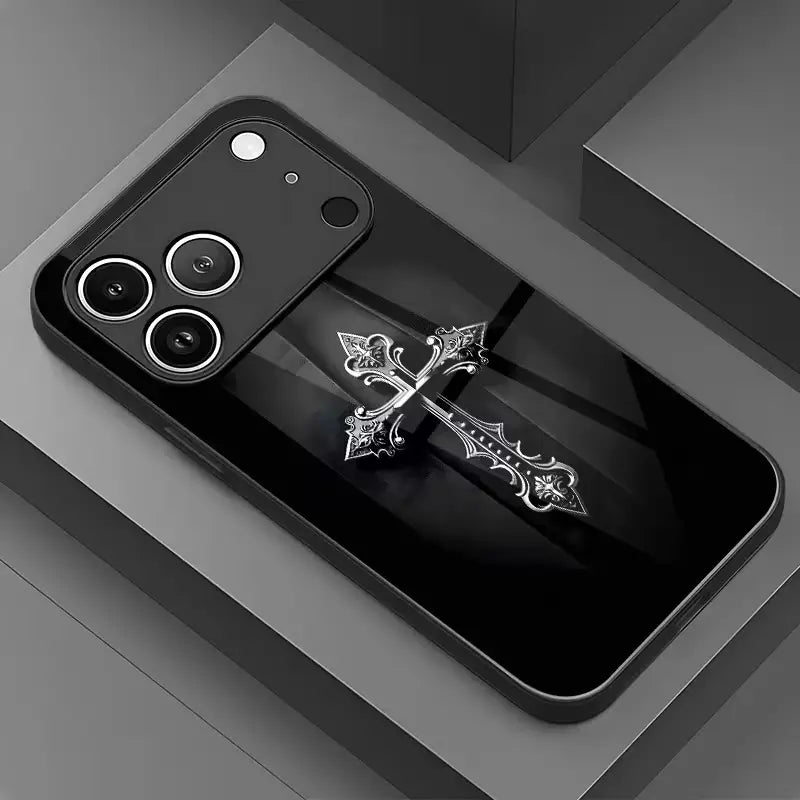 The Glory Reverence Case blends bold symbolism with luxurious modern design, creating a statement piece that stands out effortlessly. Featuring a finely detailed metallic cross set against a sleek, deep–black glossy finish, this case brings together elegance, strength, and spiritual meaning.