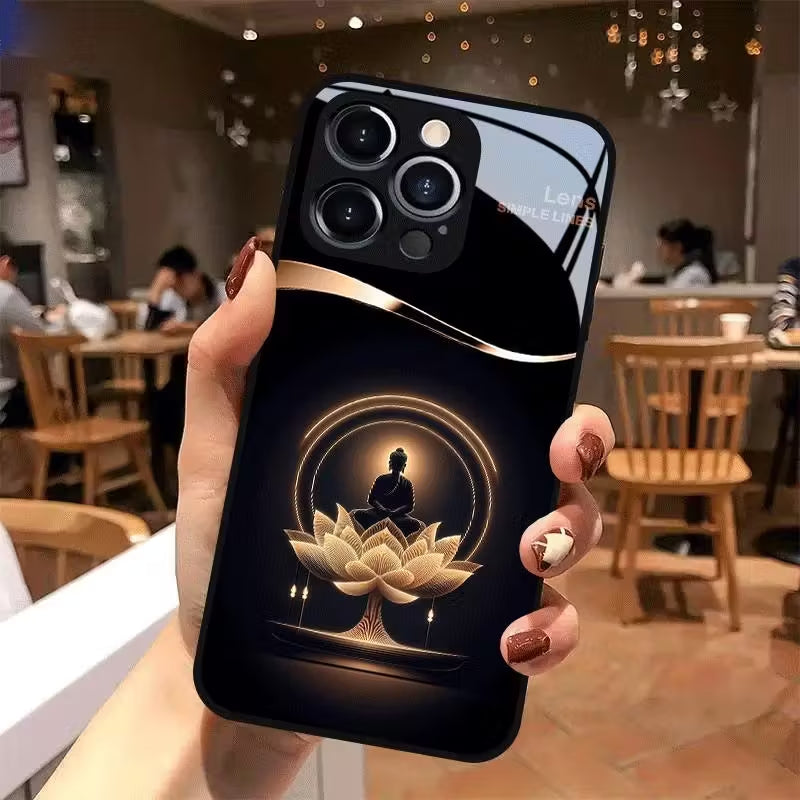 Awaken serenity with the Lotus Enlightenment case — a harmonious blend of spiritual elegance and modern artistry. The radiant golden Buddha silhouette sits gracefully above blooming lotus flowers, symbolizing purity, rebirth, and inner peace.
