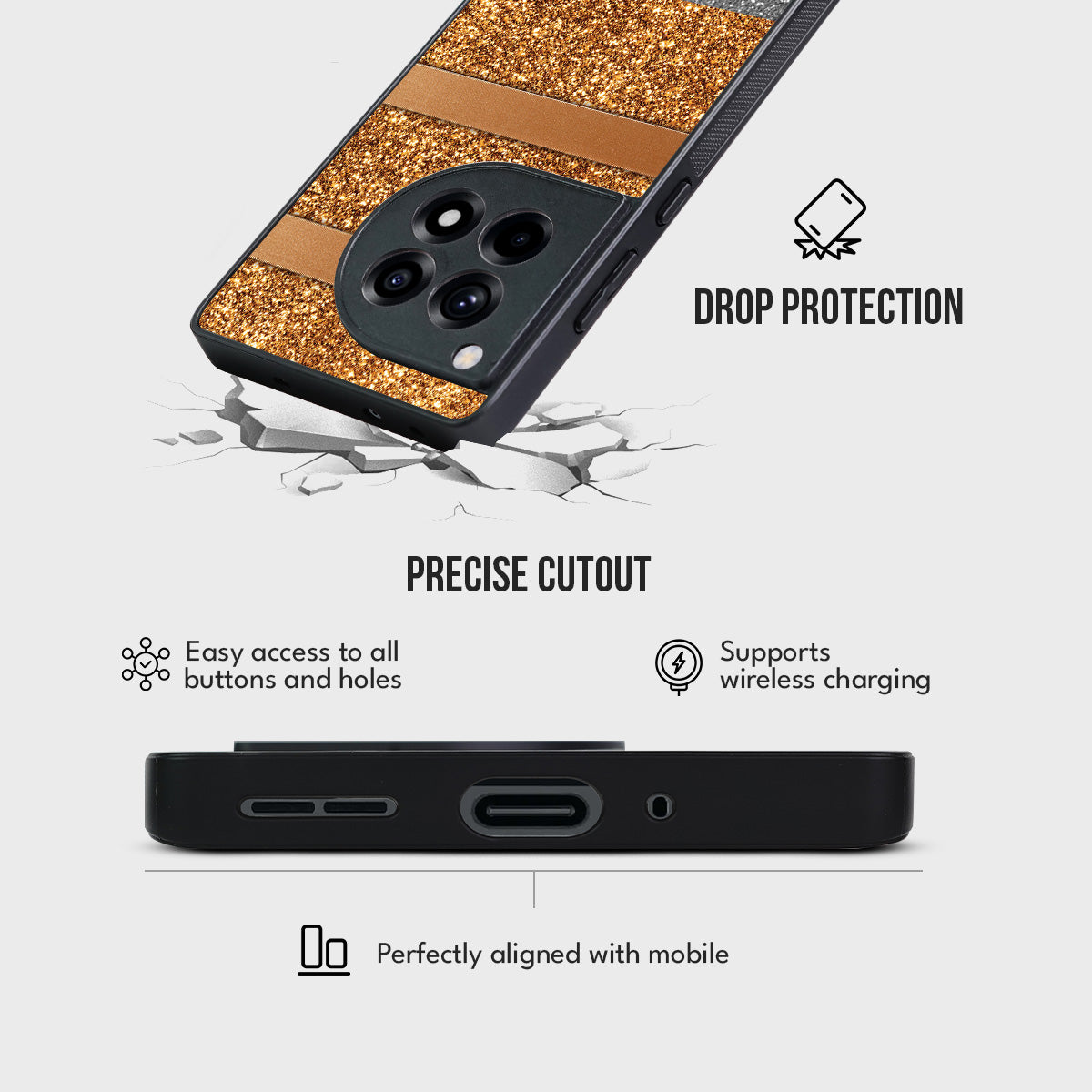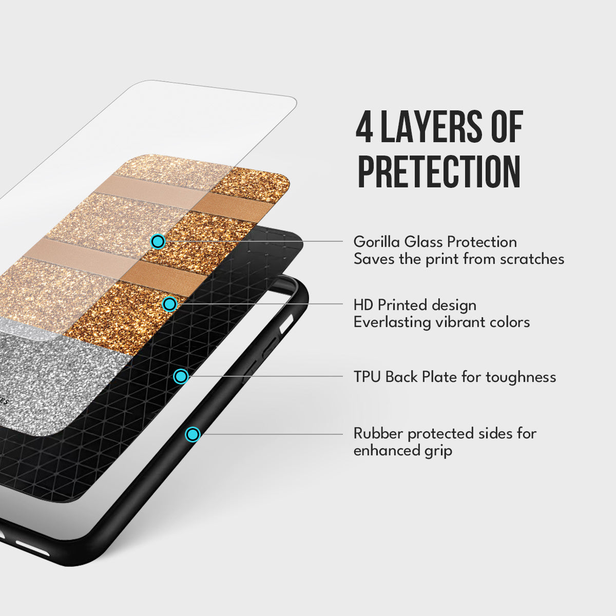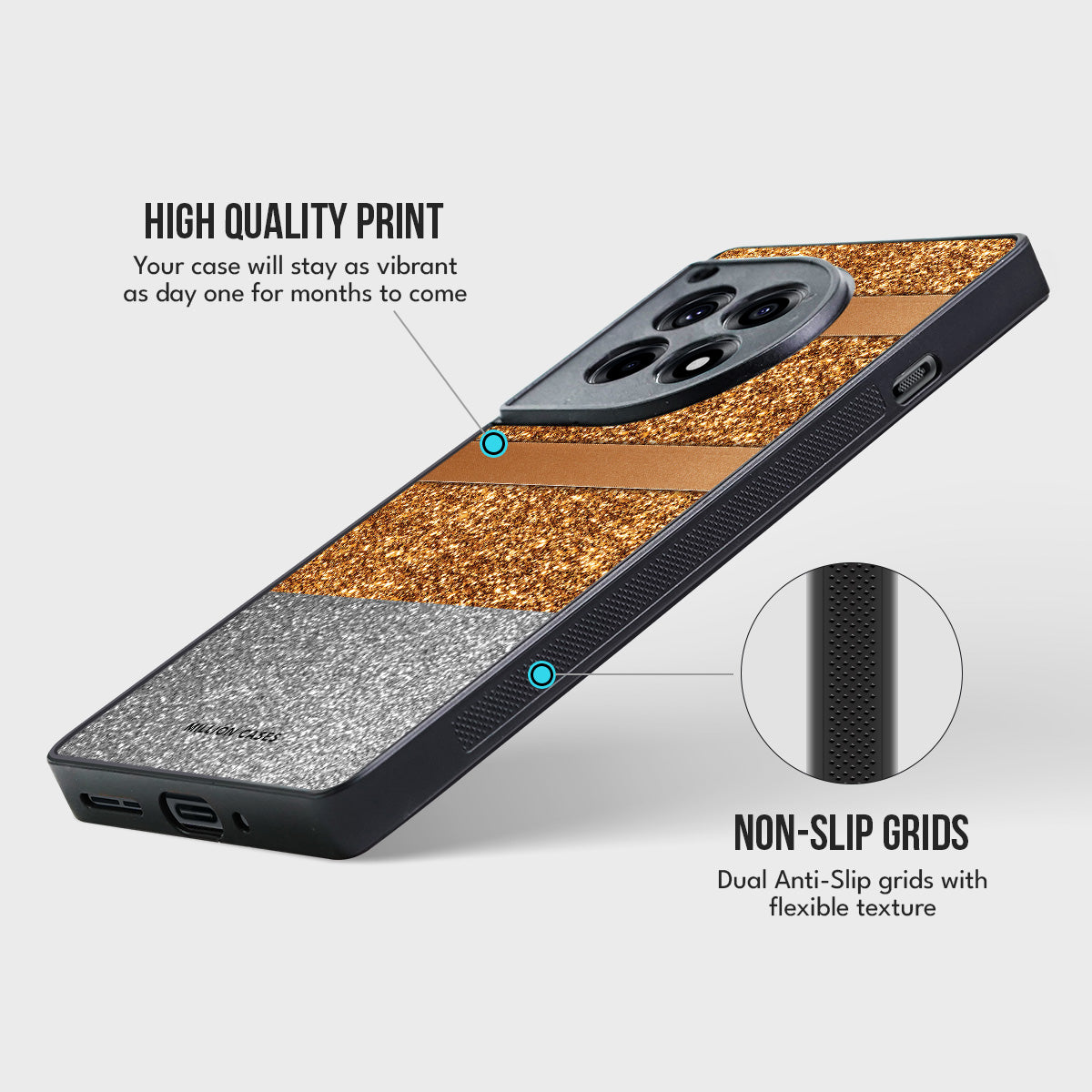 Turn every glance into admiration with the Golden Rush phone case — a dazzling blend of glitter, glamour, and protection. Designed for those who love to stand out, this case features a luxurious mix of rich gold sparkle layered with silver shimmer, wrapped in elegant satin gold bands for a touch of sophistication