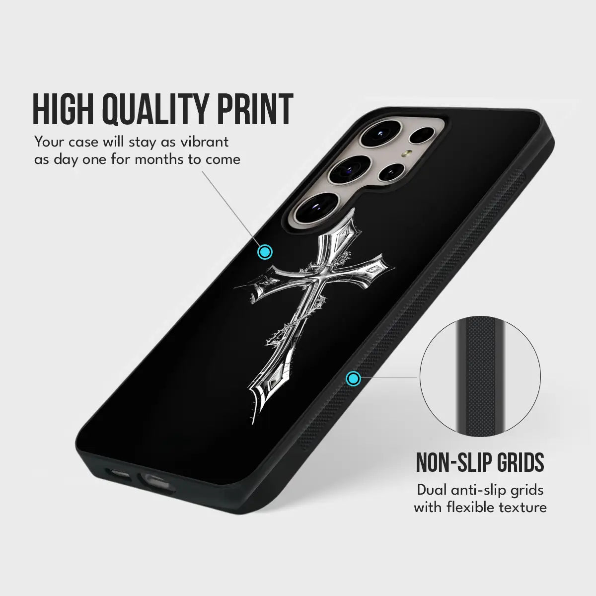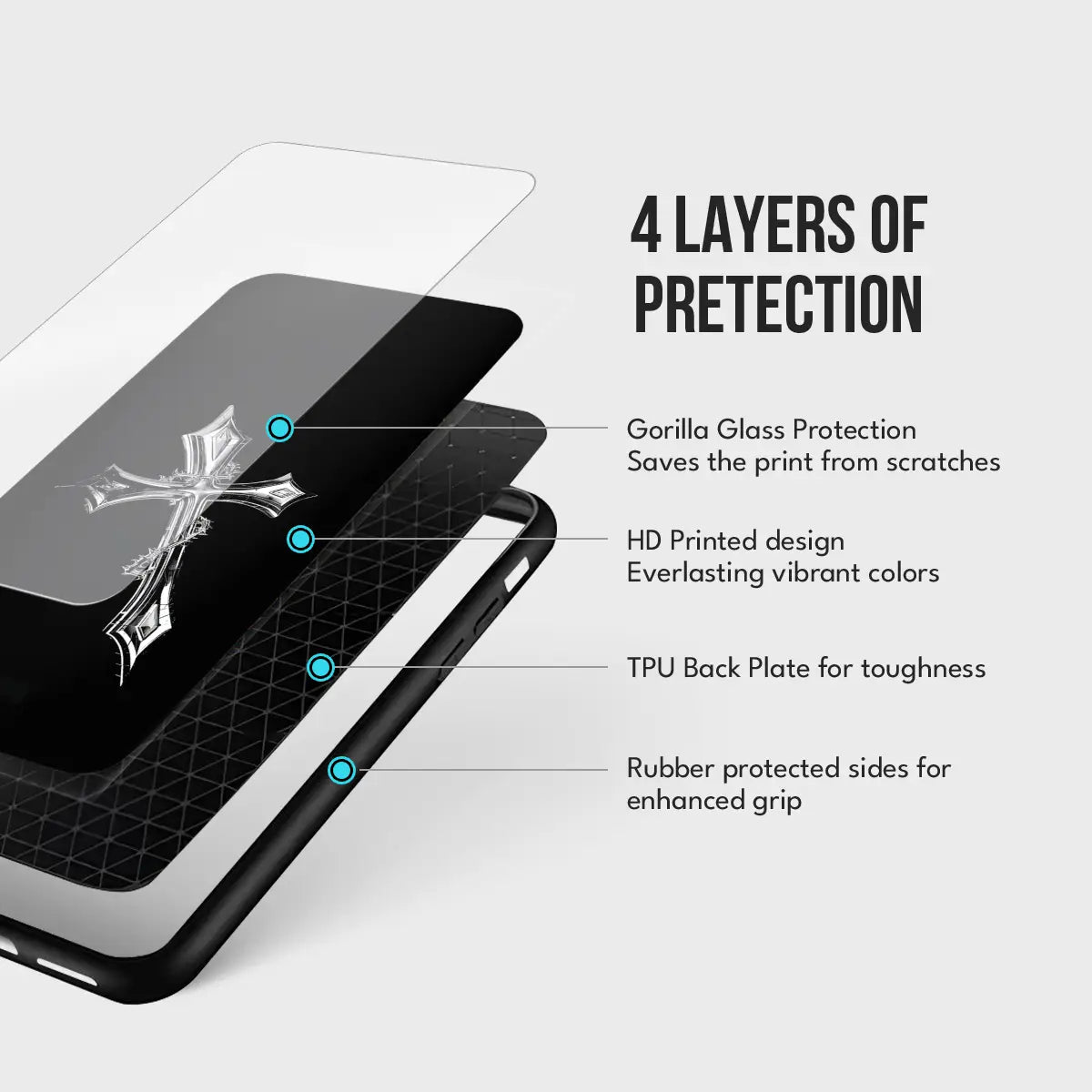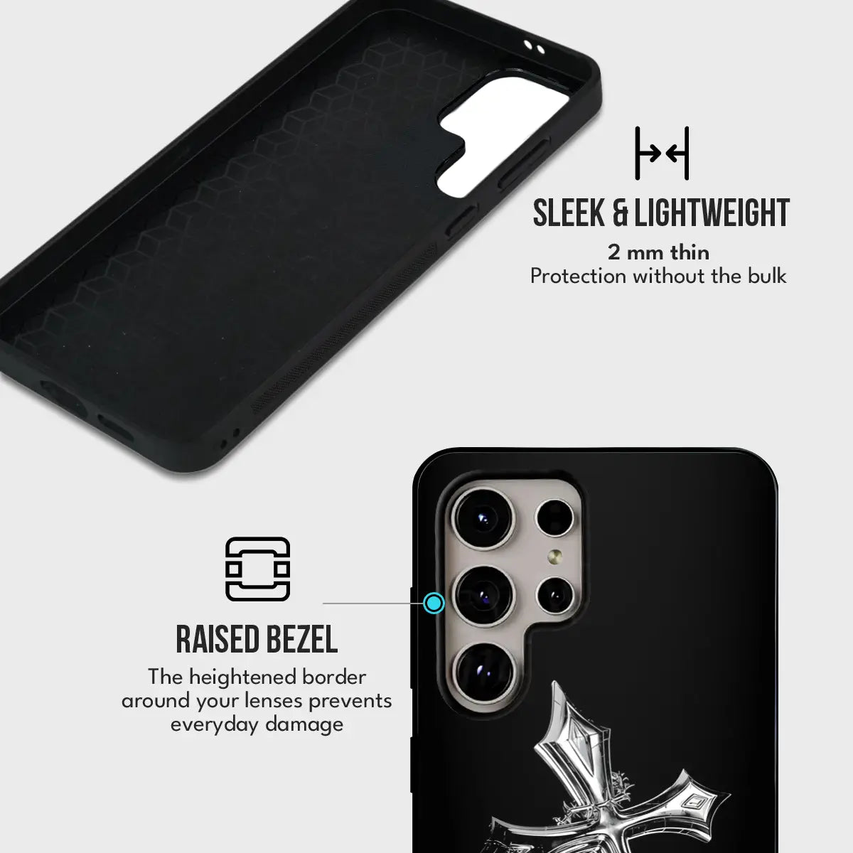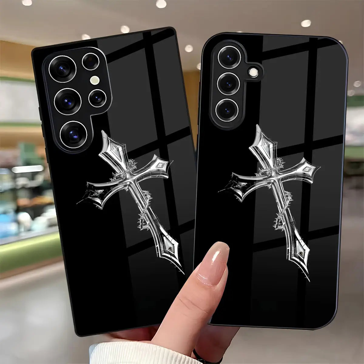 Cruciform Creed Case stands at the intersection of faith, strength, and restraint. Set against a deep black glass finish, the refined metallic cross emerges with quiet authority—symbolizing conviction, discipline, and an unshakable inner code. Minimal yet commanding, the design speaks without excess, making a powerful statement through simplicity.