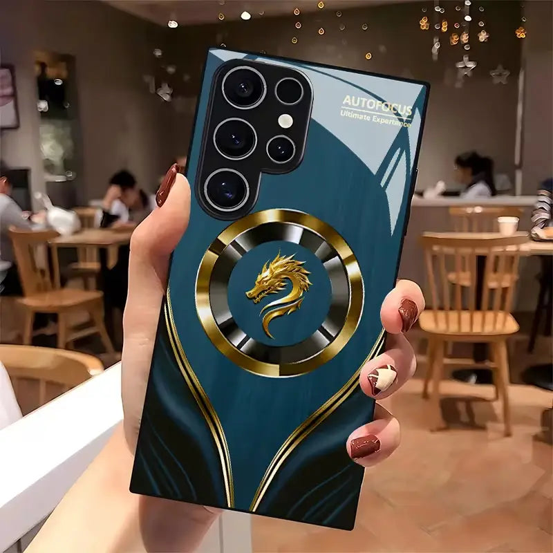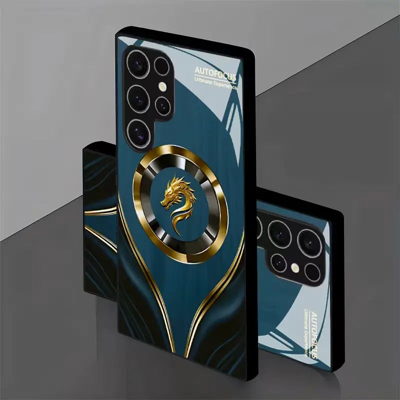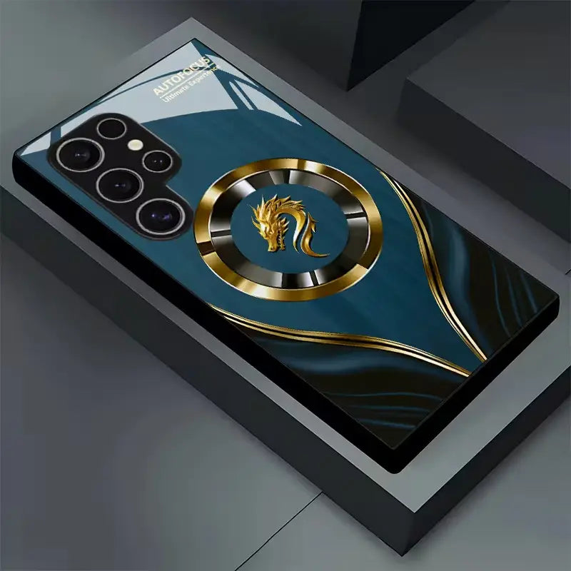 Strike a balance between myth and modern. The Draconic Crest case pairs a deep teal satin panel and a bold, medallion-style dragon emblem. Flowing metallic inlays guide the eye to the centerpiece while a rigid back and shock-cushion bumper quietly handle the daily knocks. Slim, grippy, and wireless-ready, it delivers statement luxury without giving up protection.