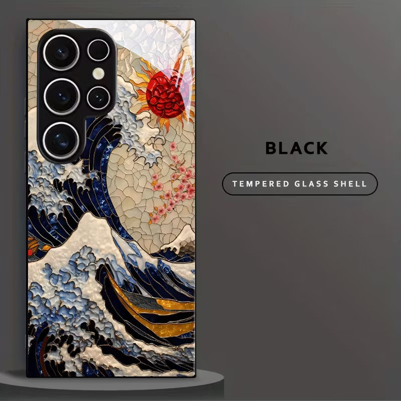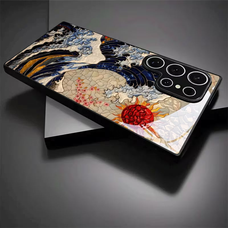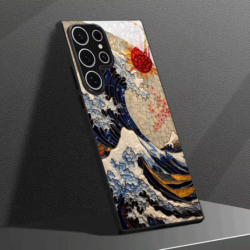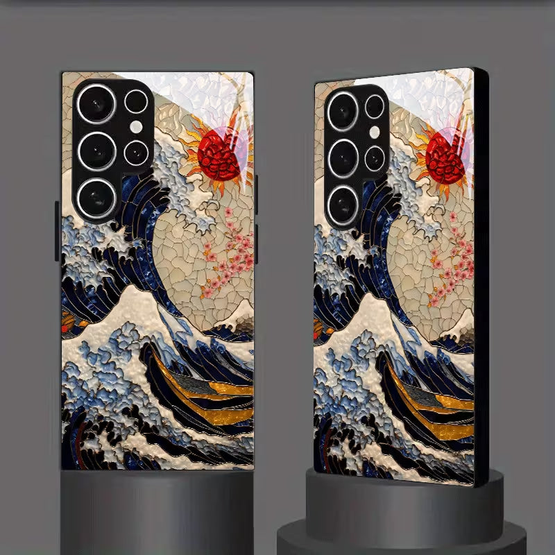 Inspired by traditional Eastern wave artistry, the Eastern Ocean Case captures the raw beauty of crashing tides beneath a radiant rising sun. Rich navy tones, textured ivory waves, and striking crimson accents blend together to create a timeless masterpiece that feels both cultural and contemporary.