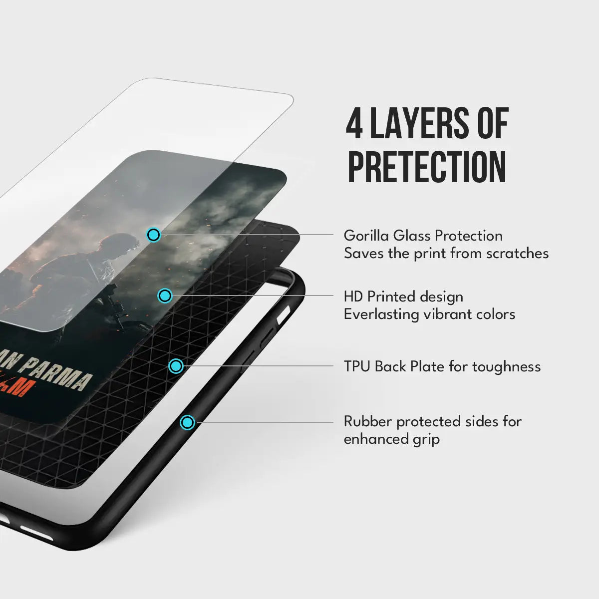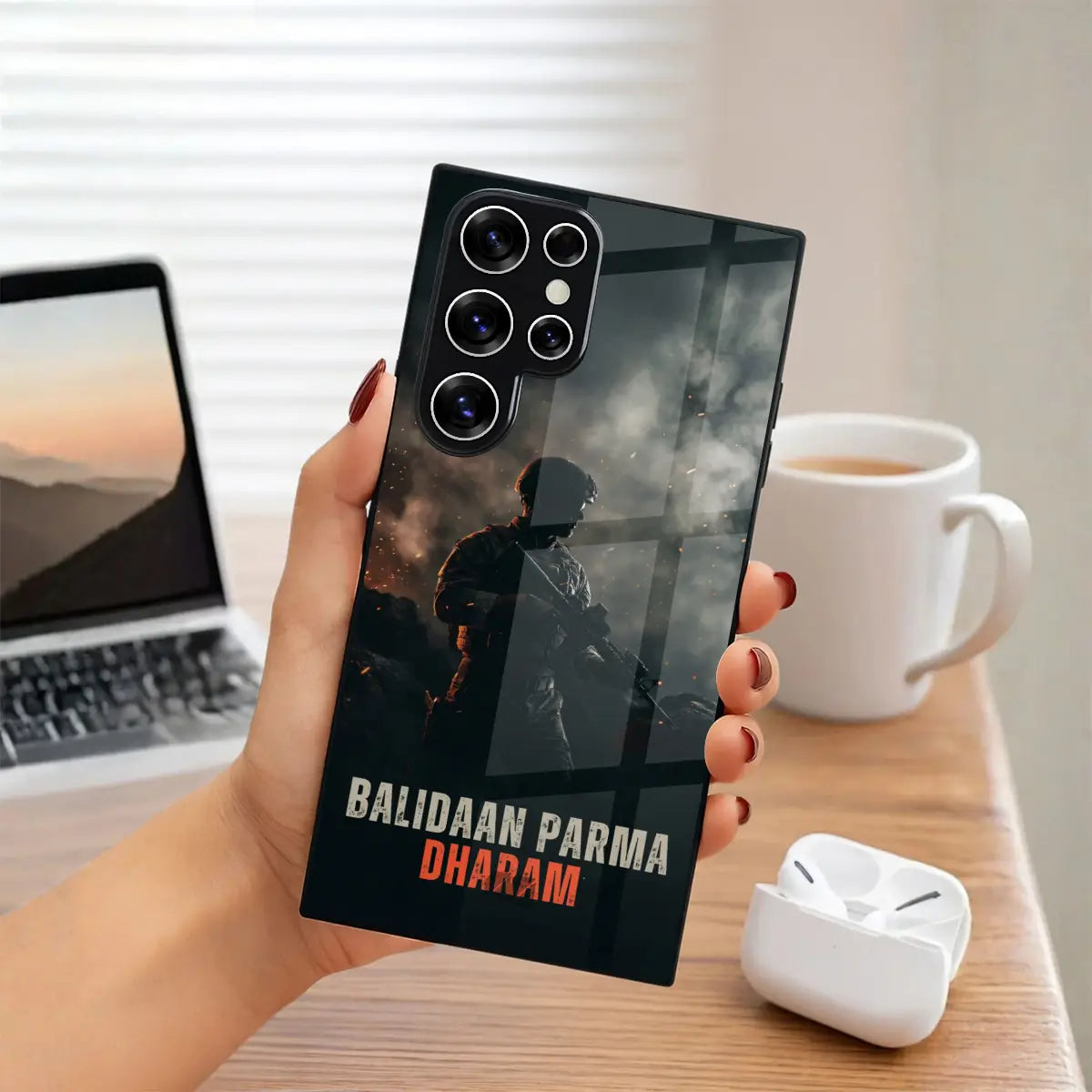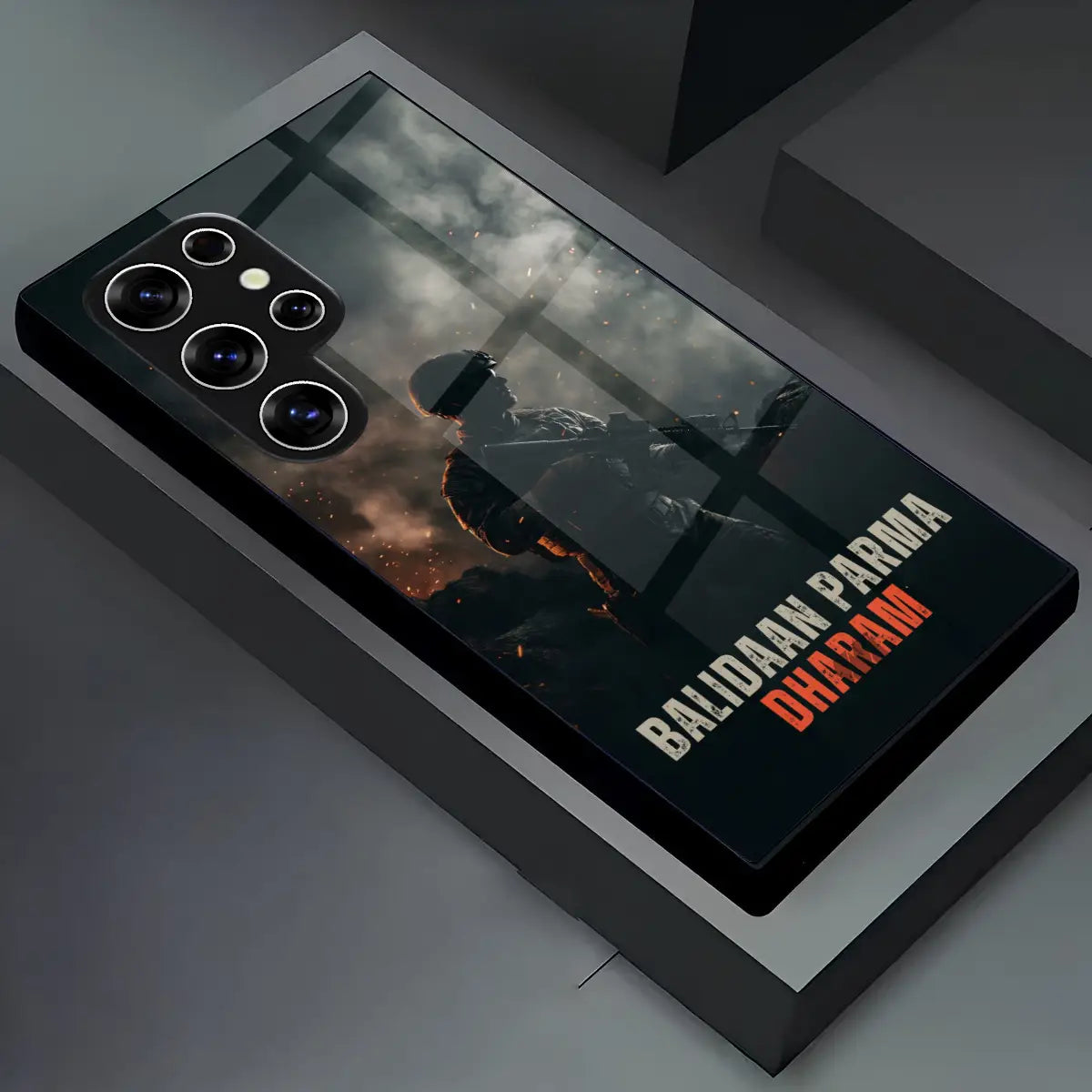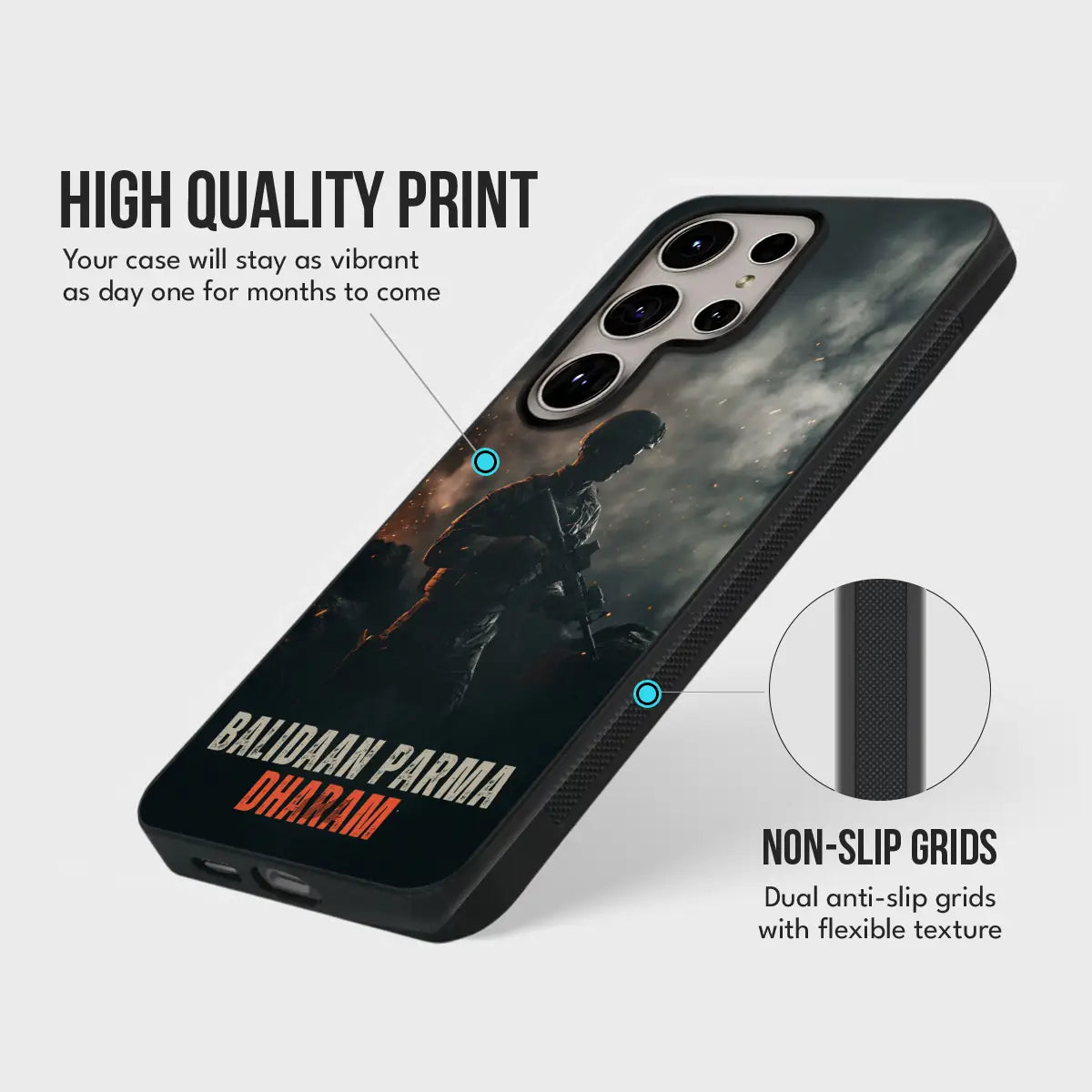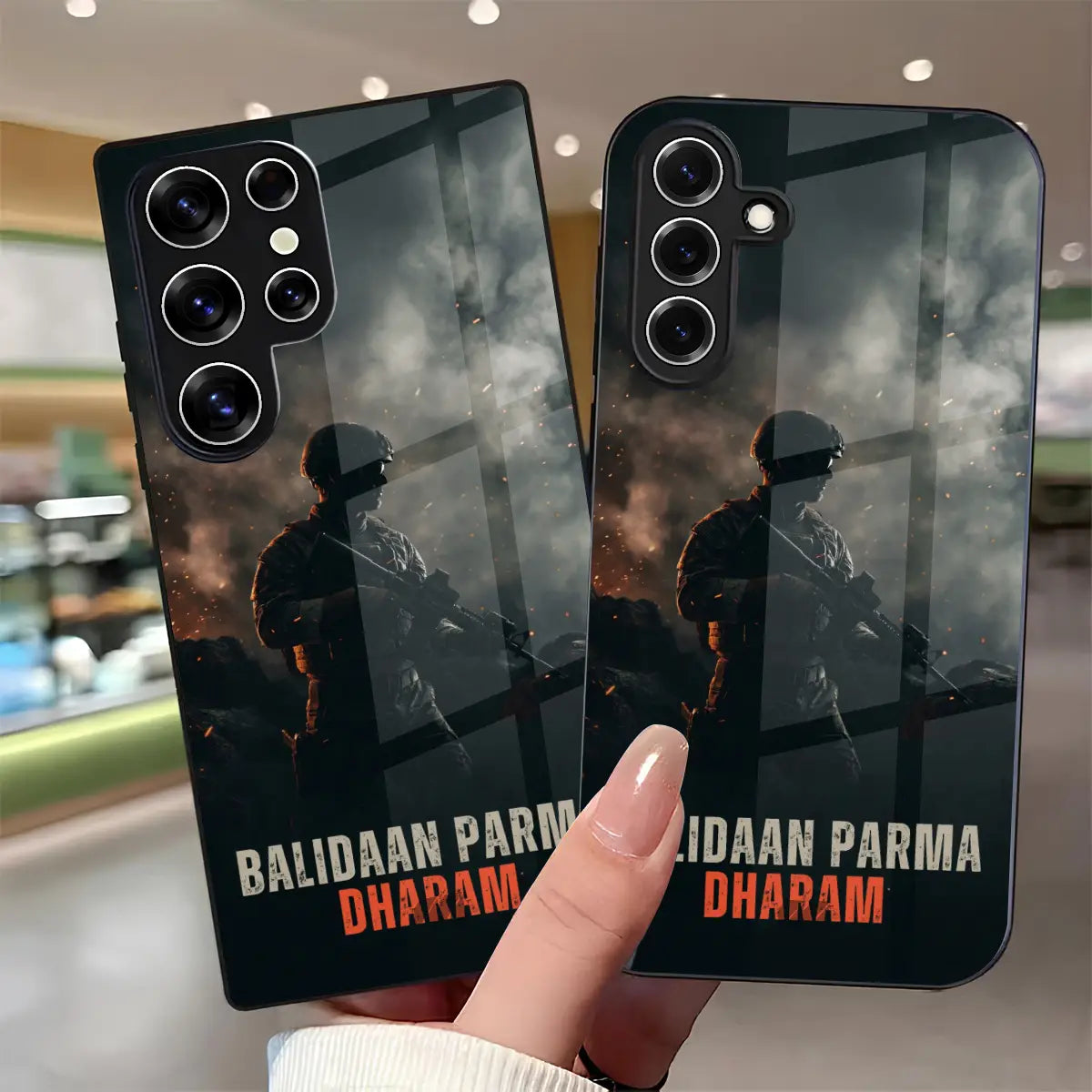 Supreme Sacrifice is a tribute to courage that stands taller than fear and duty that transcends life itself. Inspired by the timeless principle “Balidaan Parama Dharam”—sacrifice is the highest duty—this case features a lone warrior standing firm amid smoke and fire, symbolizing valor, resolve, and selflessness.