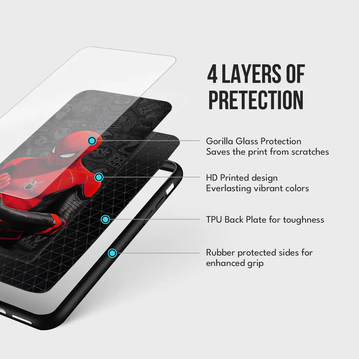 - TPU Back Plate – Tough yet flexible layer for shock absorption.