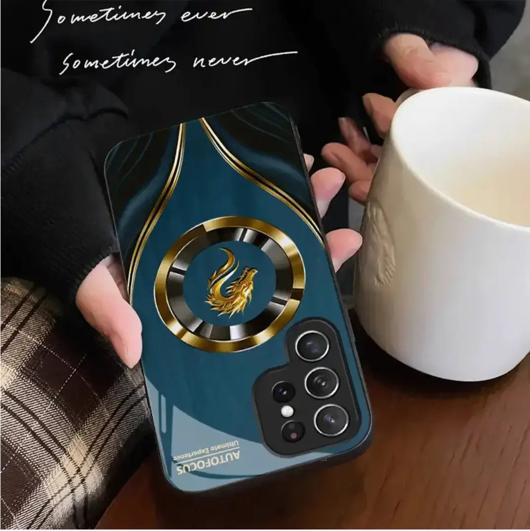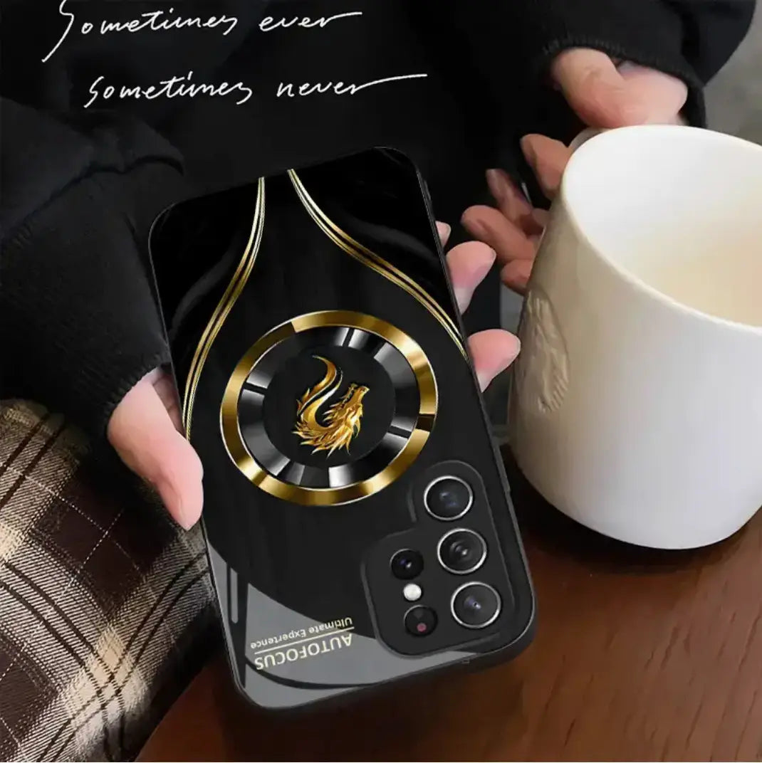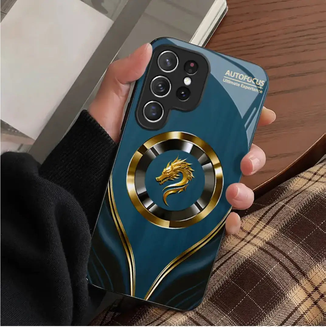 Strike a balance between myth and modern. The Draconic Crest case pairs a deep teal satin panel and a bold, medallion-style dragon emblem. Flowing metallic inlays guide the eye to the centerpiece while a rigid back and shock-cushion bumper quietly handle the daily knocks. Slim, grippy, and wireless-ready, it delivers statement luxury without giving up protection.