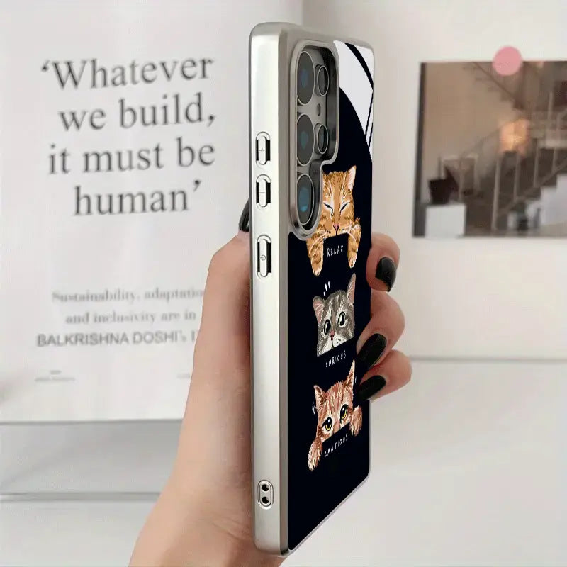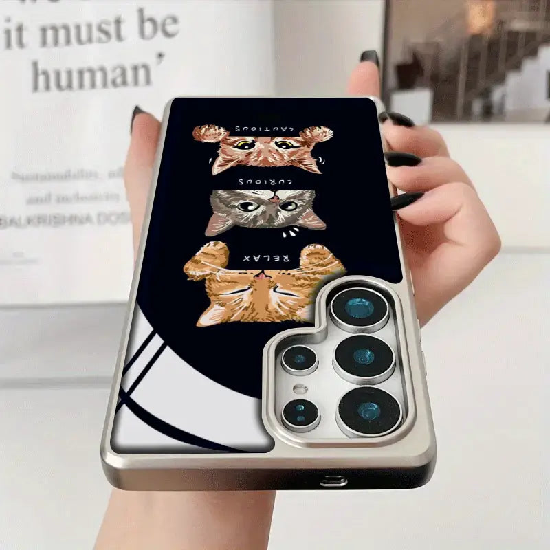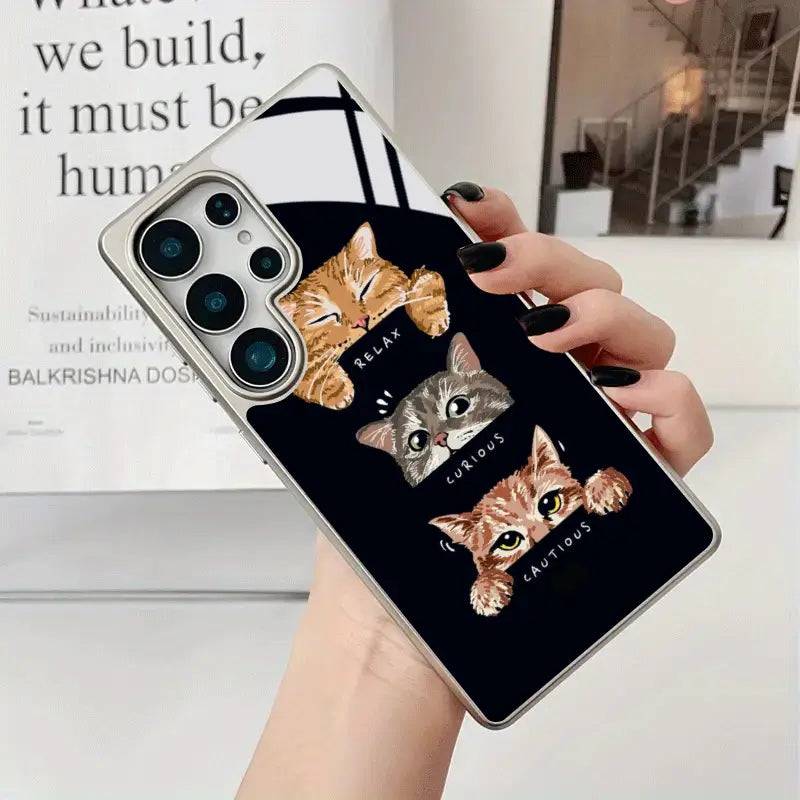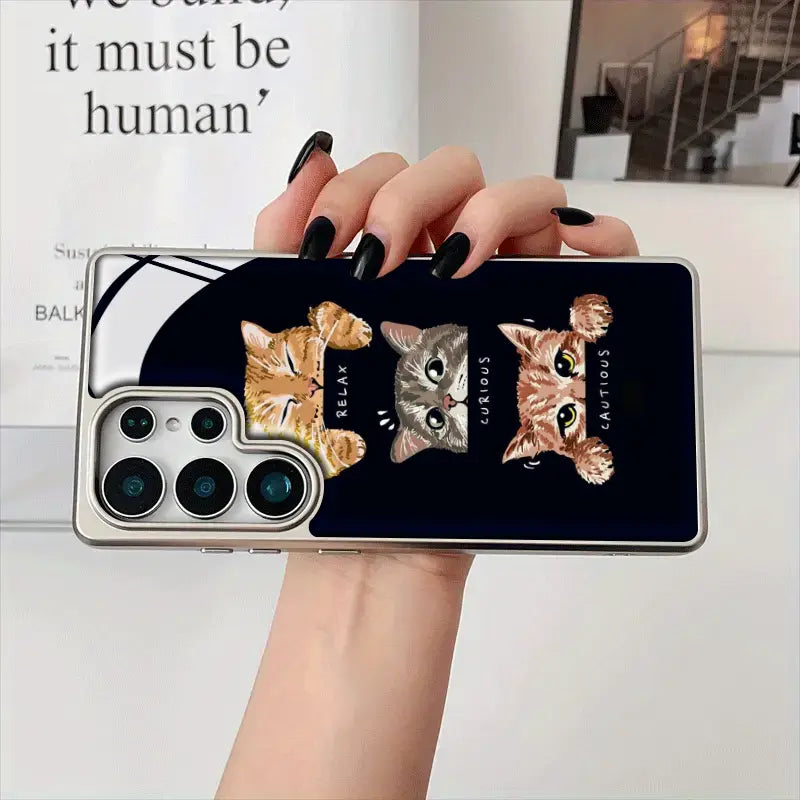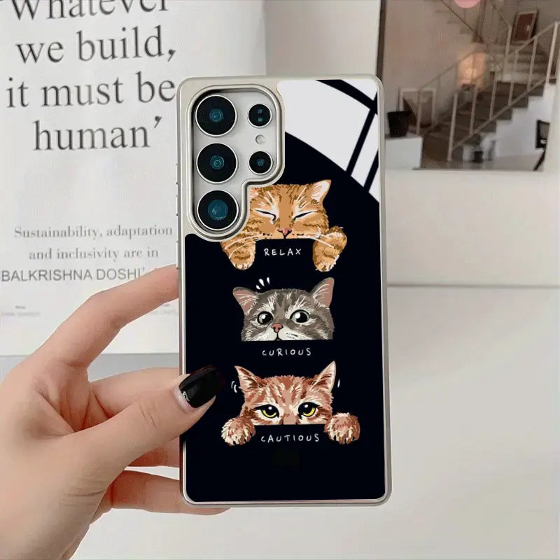 Express every side of your personality with the Moodboard Kitties phone case. Featuring an adorable trio of expressive cats—Relaxed, Curious, and Cautious—this design captures everyday moods in the cutest way possible. Set against a sleek dark background, the playful artwork pops with charm while keeping a clean, modern aesthetic.