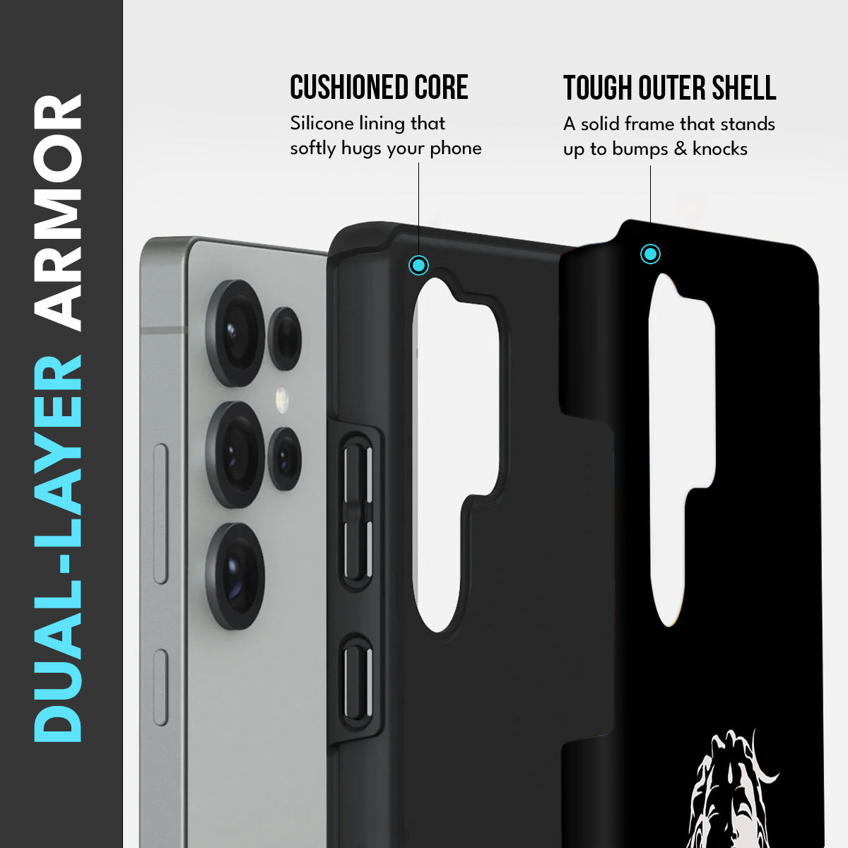 - Dual-Layer Protection: The phone case features silicon cushioning inside and a durable PC exterior outside.