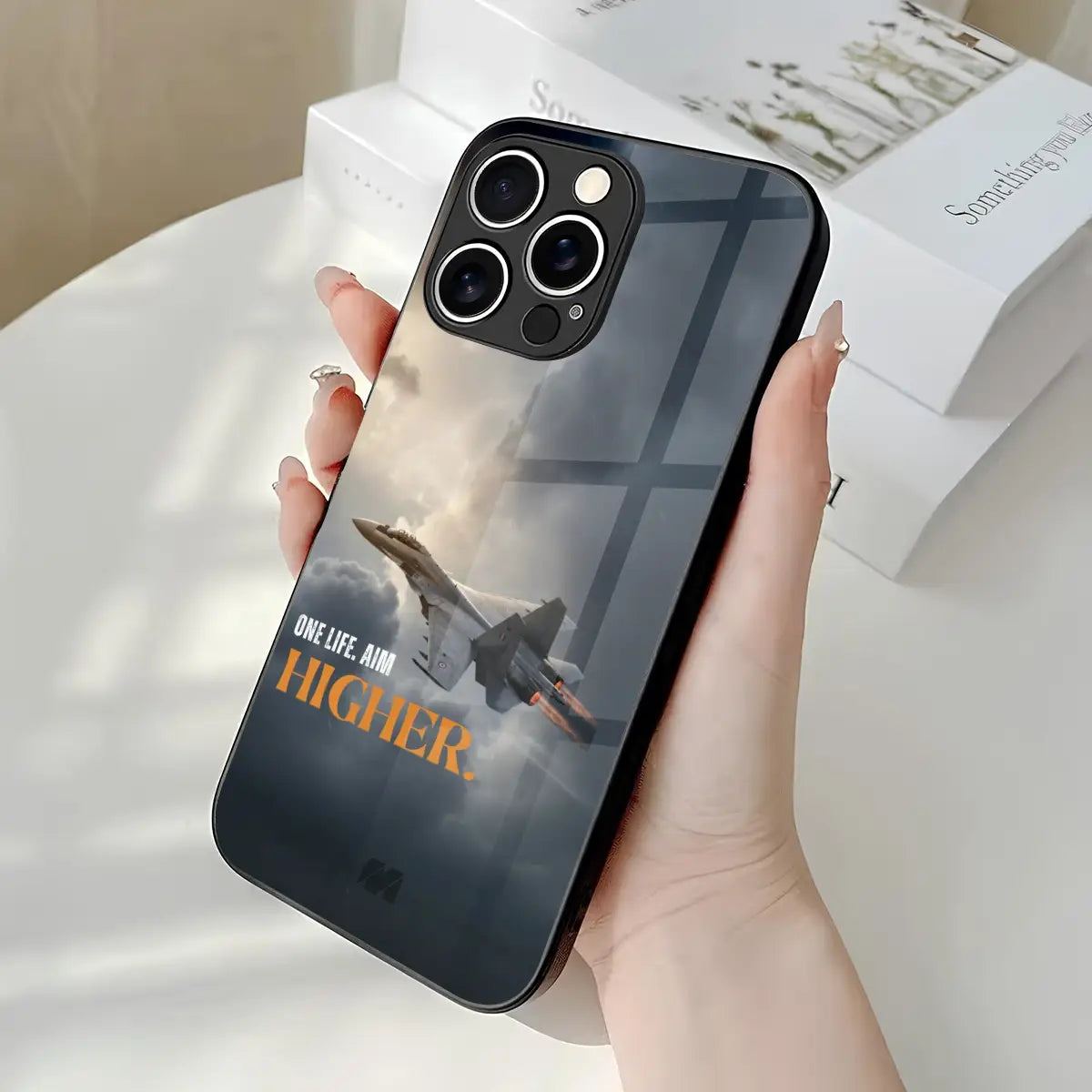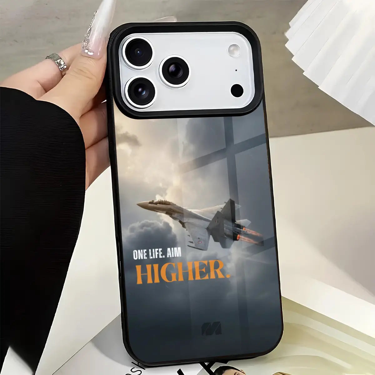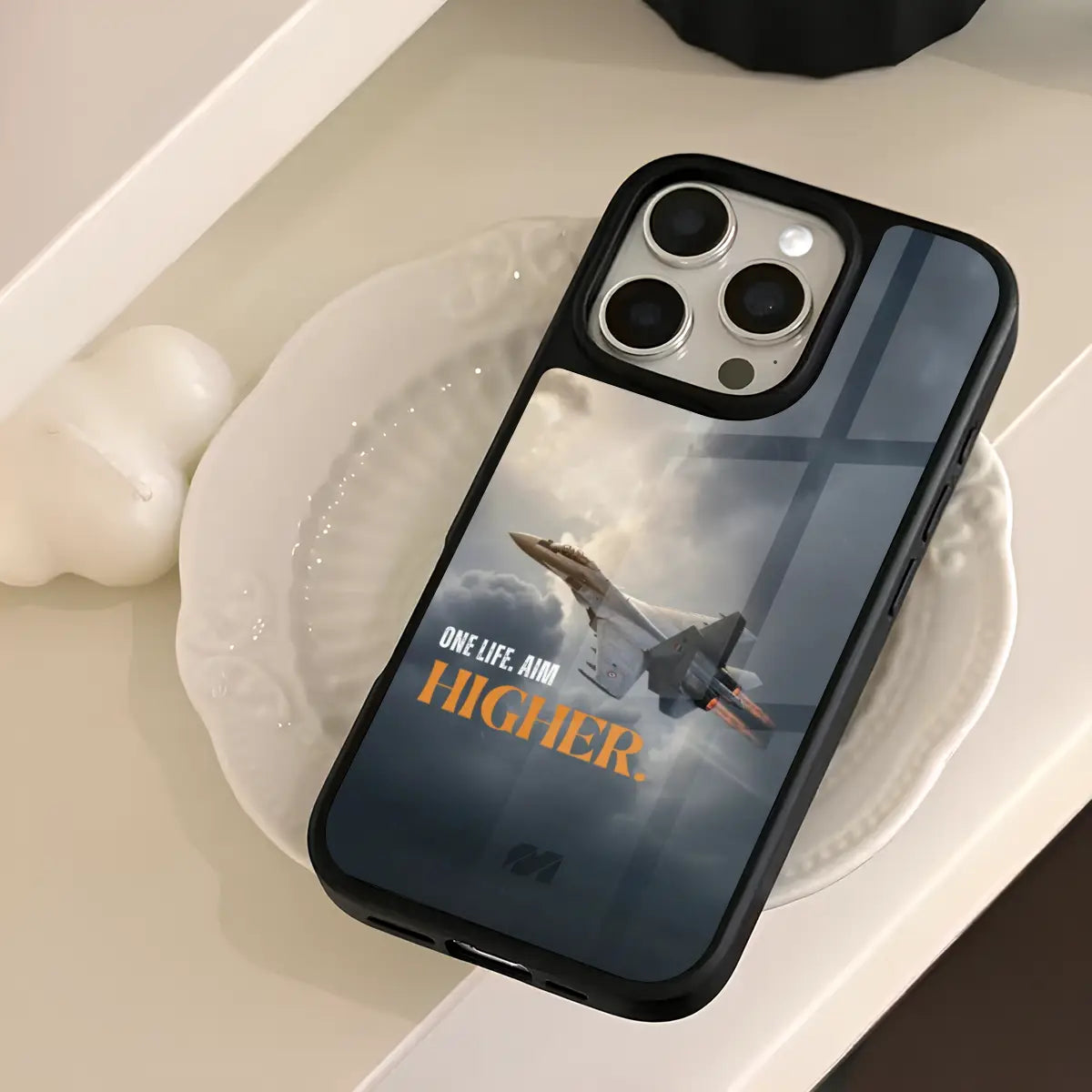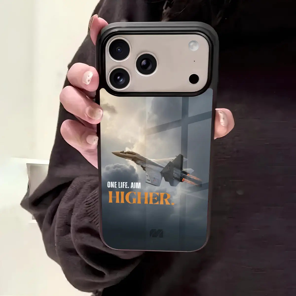 Inspired by the spirit of aviation and the courage to rise above limits, the Aim Higher case captures ambition in motion. Featuring a powerful fighter jet soaring through dramatic clouds, this design symbolizes focus, fearlessness, and the drive to push beyond boundaries. The bold typography reinforces a mindset of progress—one life, one direction, higher.