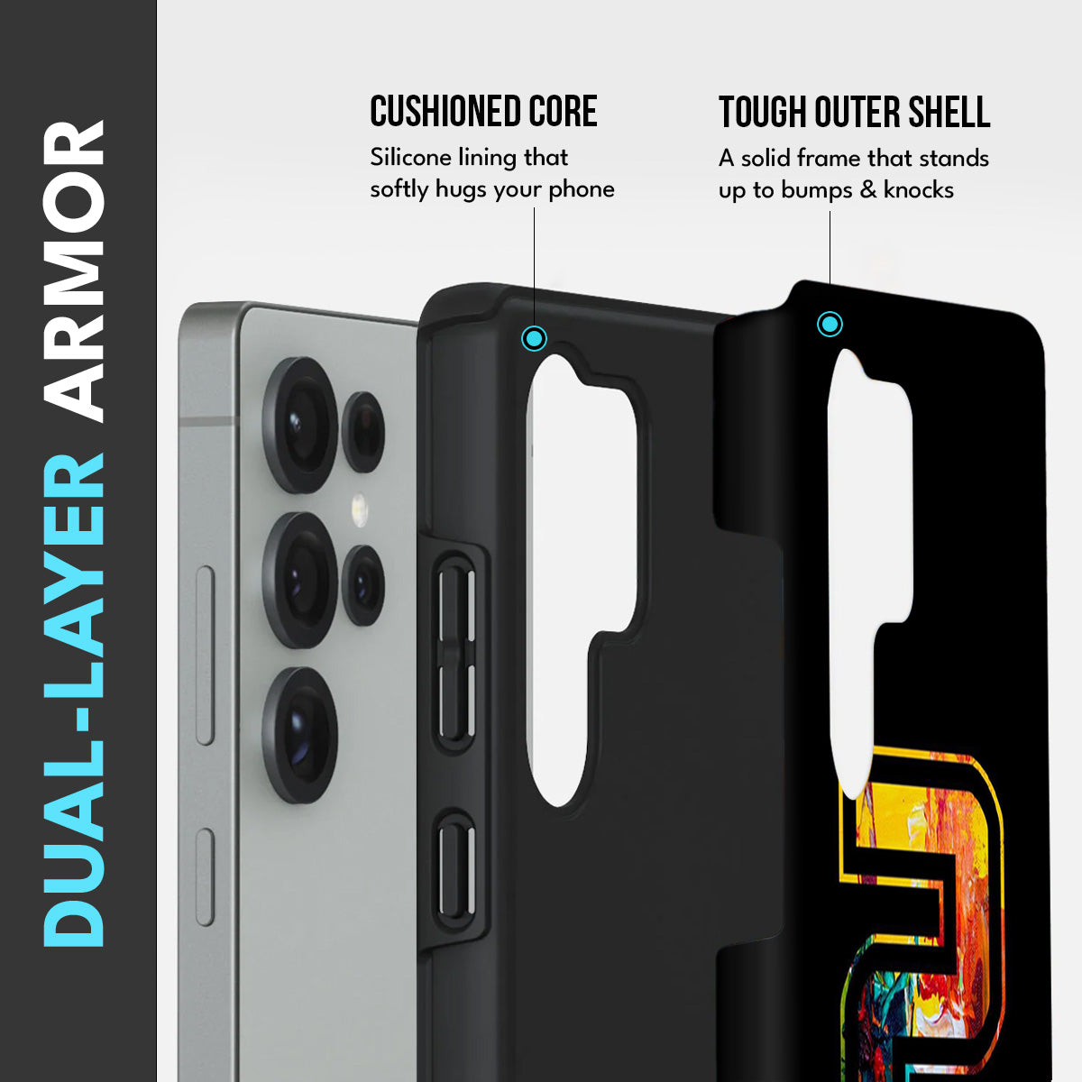 - Dual-Layer Protection: The phone case features silicon cushioning inside and a durable PC exterior outside.
