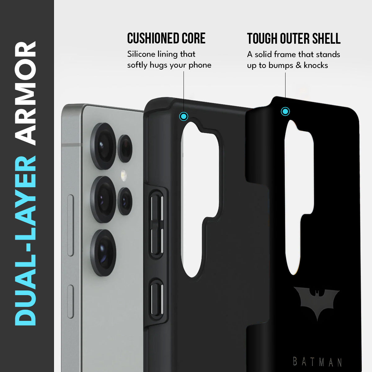 Unleash your inner vigilante with the Batman Emblem case, designed for fans who appreciate minimalism with a bold edge. Featuring a sleek jet-black finish and a subtle matte Bat-symbol at the center, this case captures the essence of Gotham’s dark protector.