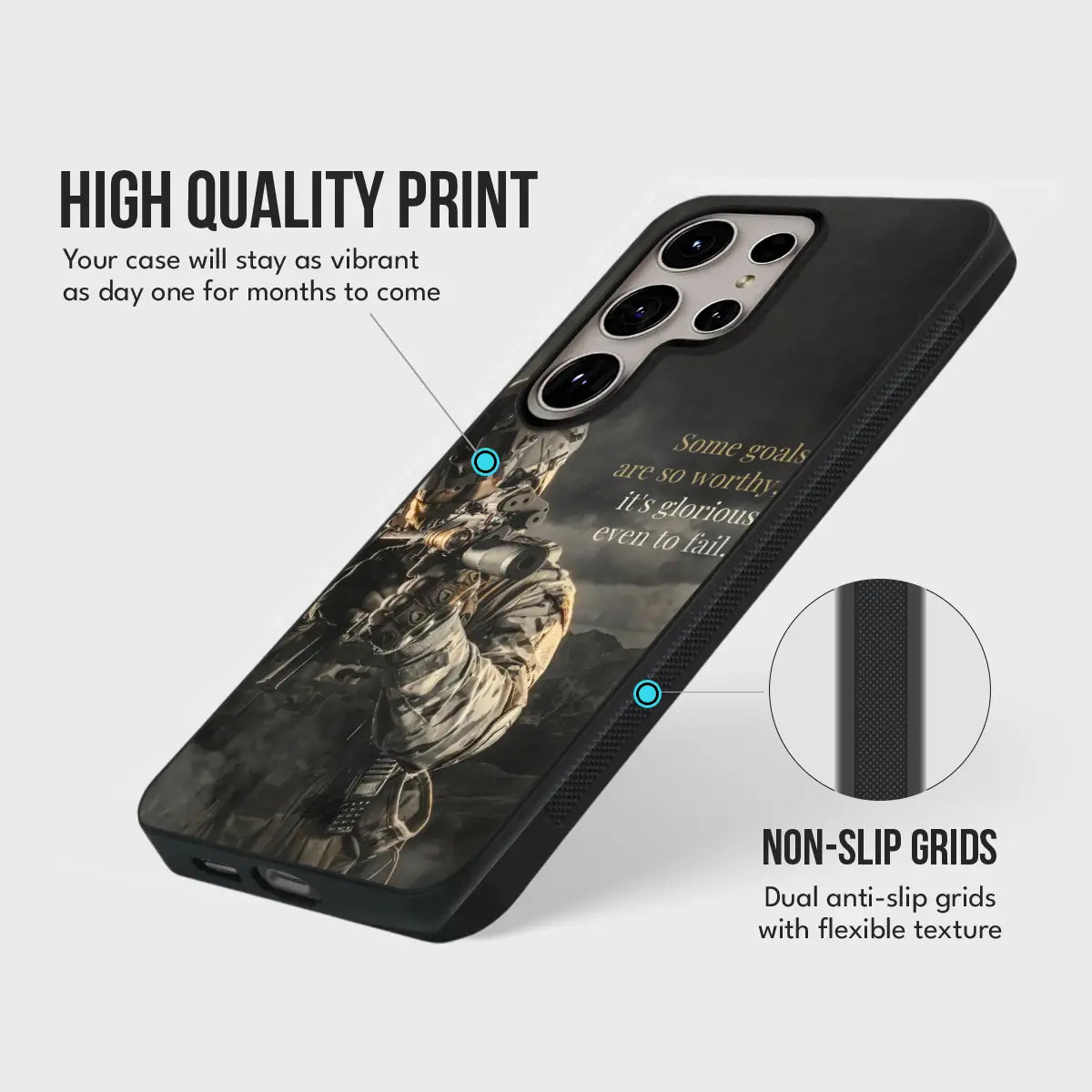 Forged in discipline and driven by purpose, Battle Oath represents the promise every warrior makes—to stand firm, aim true, and accept the cost of honor. Featuring an elite soldier locked in focus, paired with the words “Some goals are so worthy, it’s glorious even to fail,” this design captures courage, sacrifice, and unbreakable resolve.