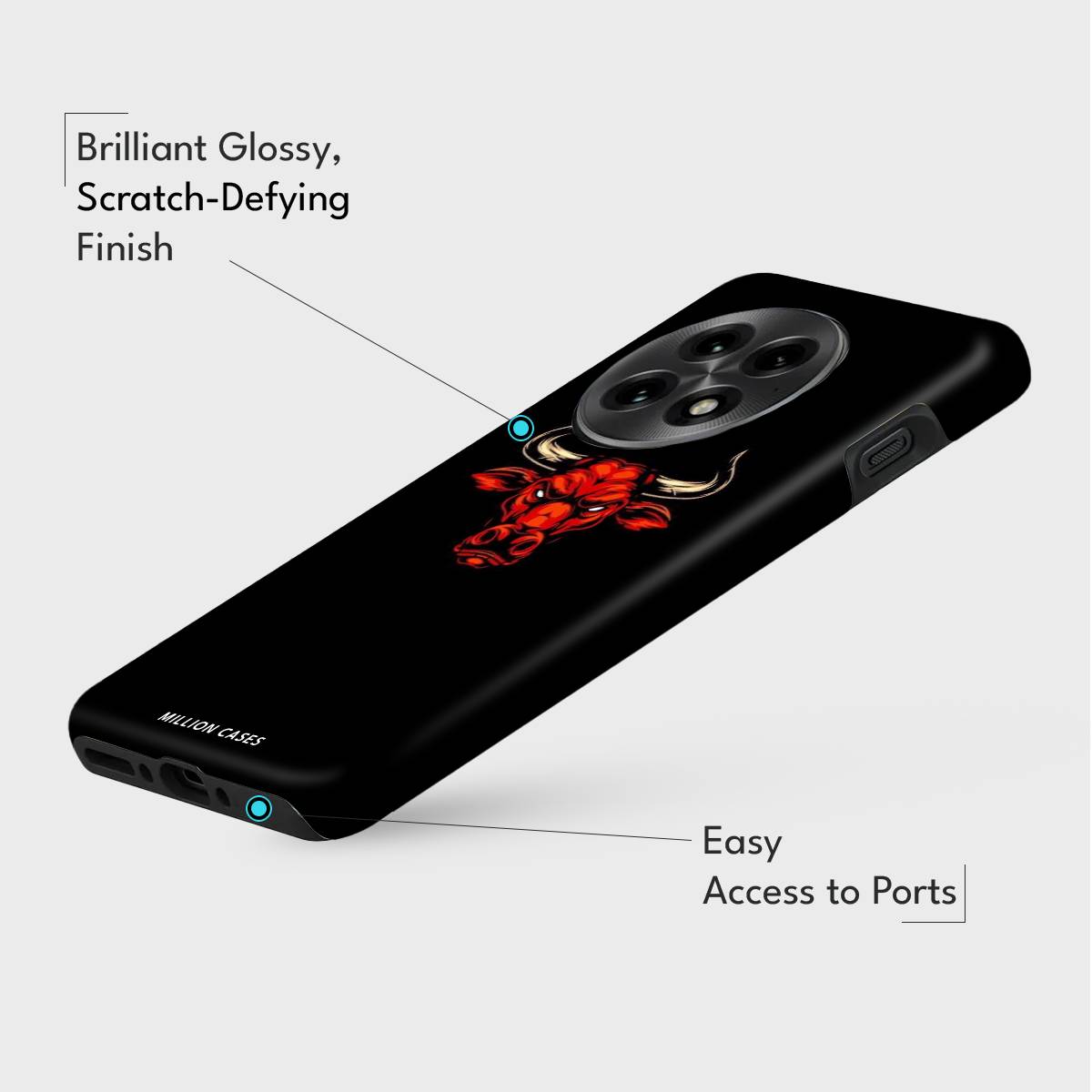 Unleash raw power and fearless style with the Bullstorm phone case. Featuring a fierce, blazing-red bull head illustrated with bold detail, this case embodies strength, determination, and unstoppable energy. The deep black background amplifies the fiery artwork, giving your phone a striking and fearless look from every angle.