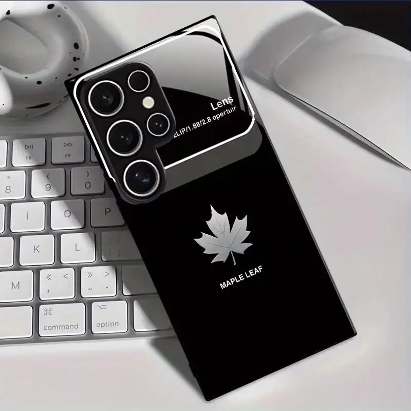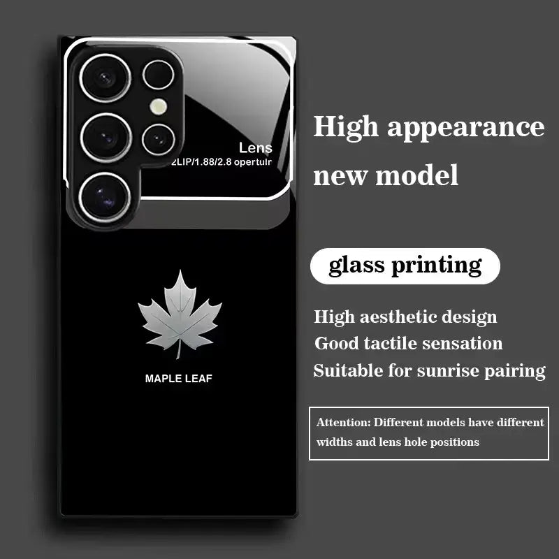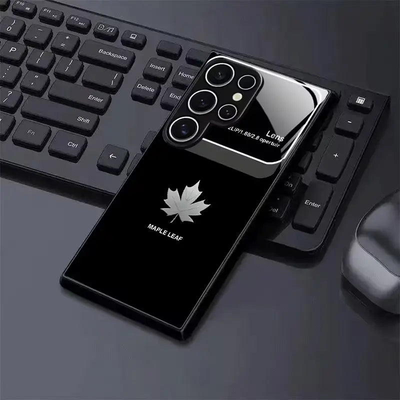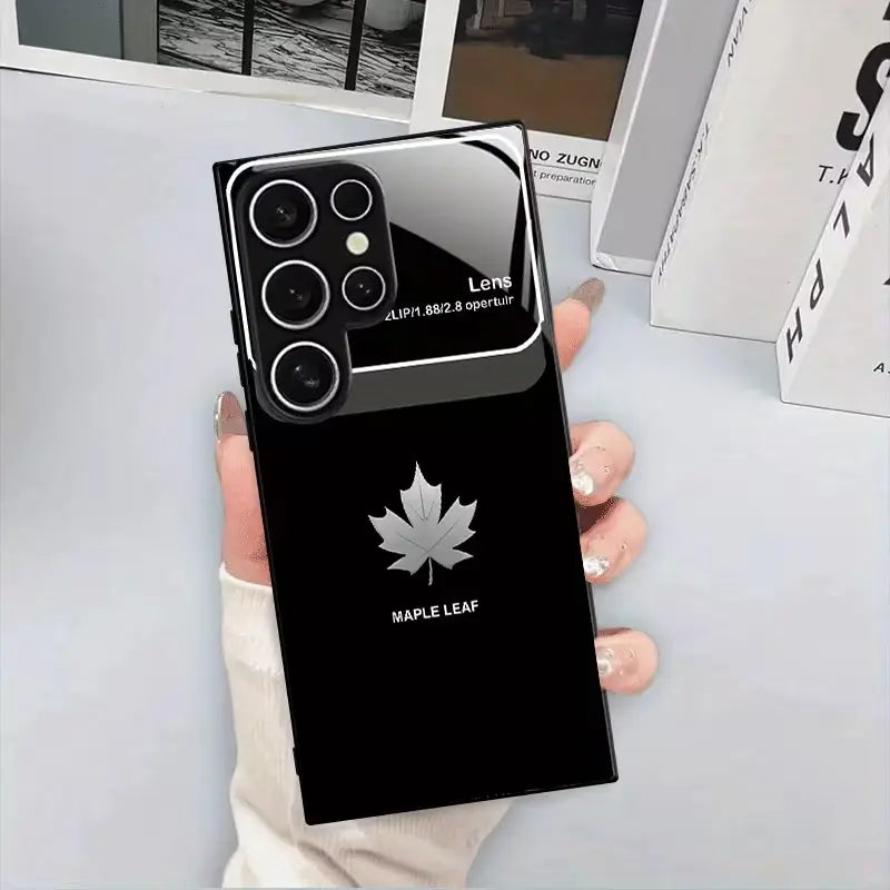 Inspired by the quiet strength of nature and refined minimalism, the Canopy Leaf Case features a sleek black glass finish accented with a silver maple leaf emblem. The deep, glossy surface reflects light with a premium sheen, while the clean design adds a sense of calm confidence to your everyday carry.
