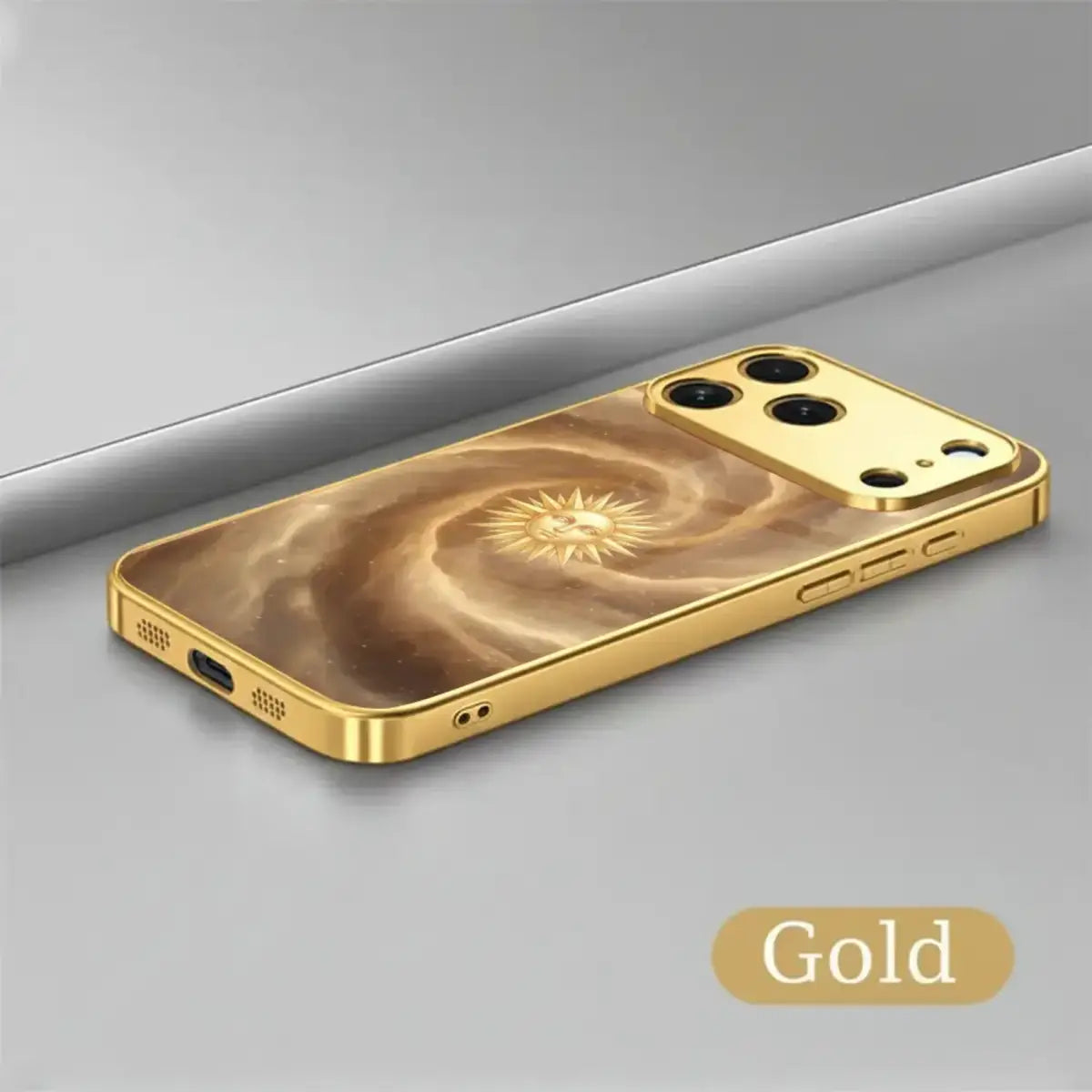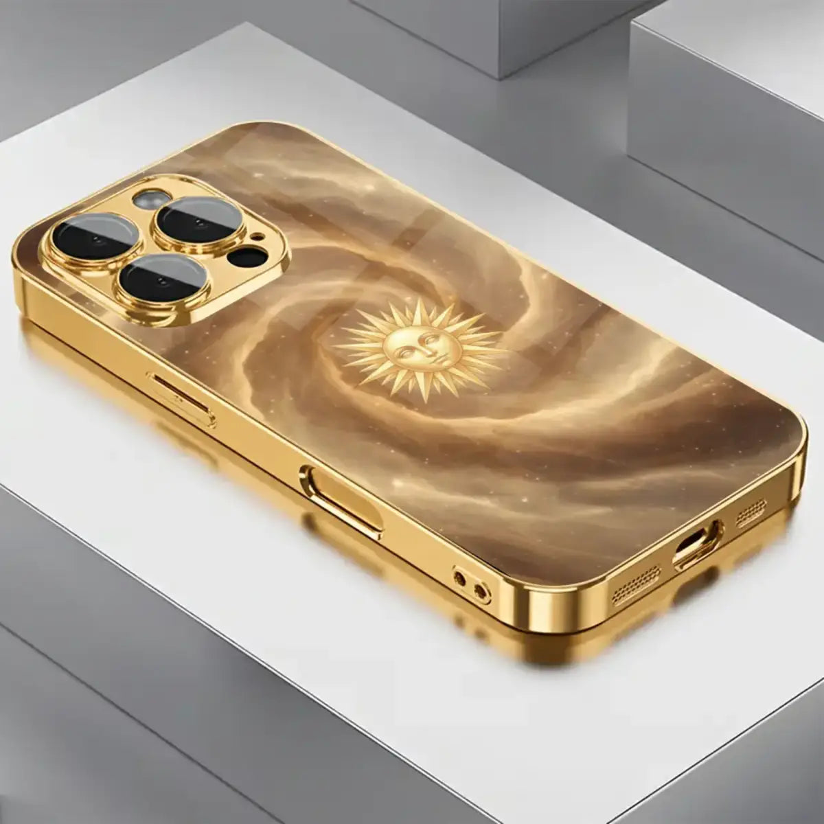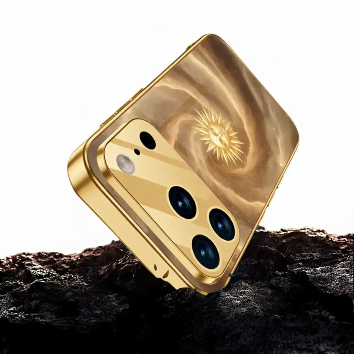 A radiant blend of cosmic beauty and golden luxury, the Celestial Sunburst case captures the power and calm of the universe in one timeless design. Featuring a glowing sun motif set against swirling celestial tones, this case brings warmth, elegance, and a touch of mysticism to your everyday style.