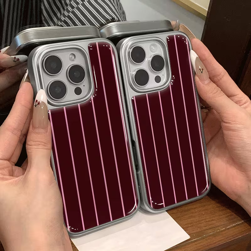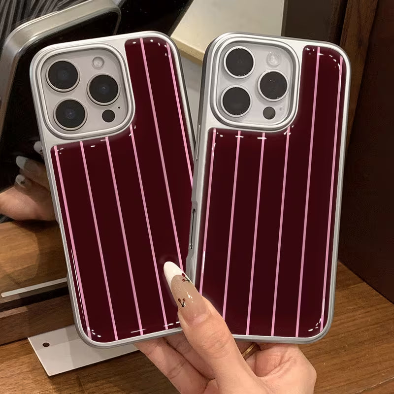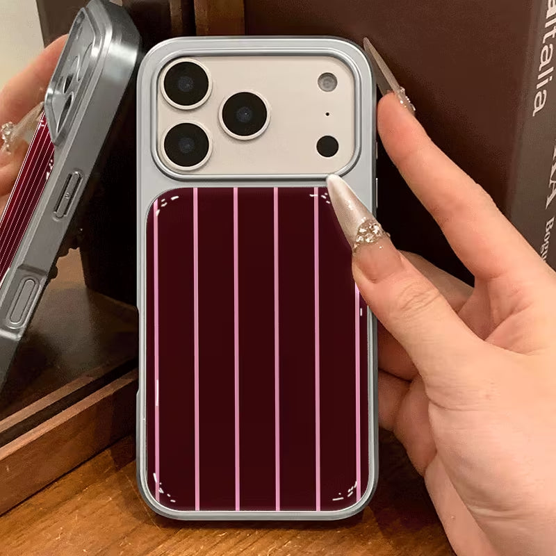 Crimson Pinstripe blends classic elegance with modern edge. Deep wine-red tones paired with clean vertical lines create a refined, tailored look inspired by timeless fashion. Sleek, confident, and effortlessly stylish, this case adds a touch of sophistication to everyday essentials.