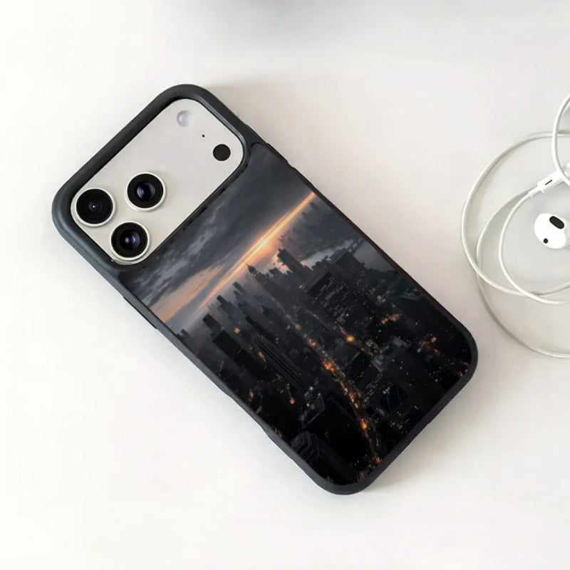 The Dark City case captures the raw energy of the city after sunset. Featuring a dramatic night skyline with glowing city lights, this case brings a bold, cinematic look to your phone. The deep tones and detailed artwork create a sleek, urban aesthetic that stands out without being loud. Built with a durable protective frame and a slim profile, it provides reliable everyday protection while maintaining a comfortable grip.