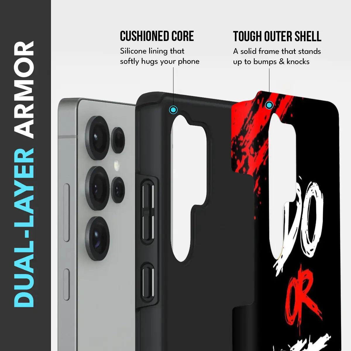 Unapologetic and fearless, the Death Route Case is made for those who move with purpose and never back down. Featuring a bold black base splashed with striking red accents and the powerful “DO OR DIE” statement, this case embodies grit, determination, and unstoppable drive.