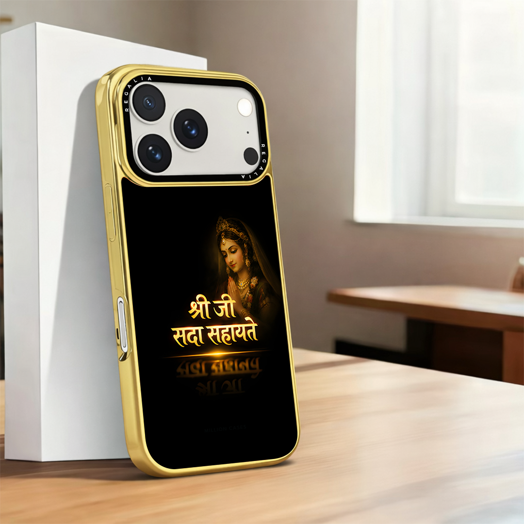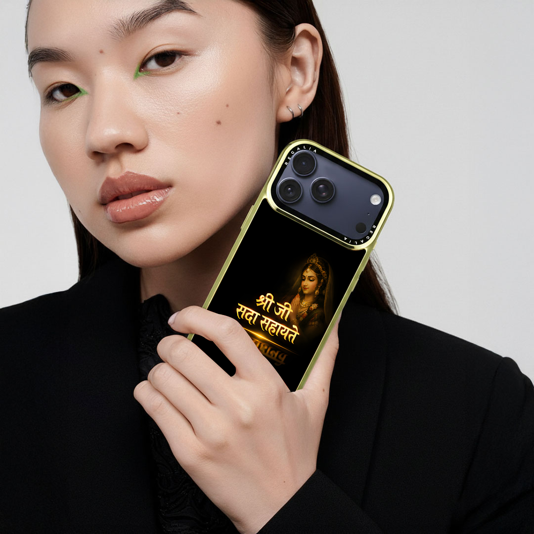 Graceful, radiant, and deeply symbolic, the Devi Shraddha Case is a tribute to devotion and divine strength. Featuring a serene depiction inspired by sacred artistry, this case embodies faith, purity, and inner power — brought to life with a luminous gold-accented finish against a rich, elegant backdrop.