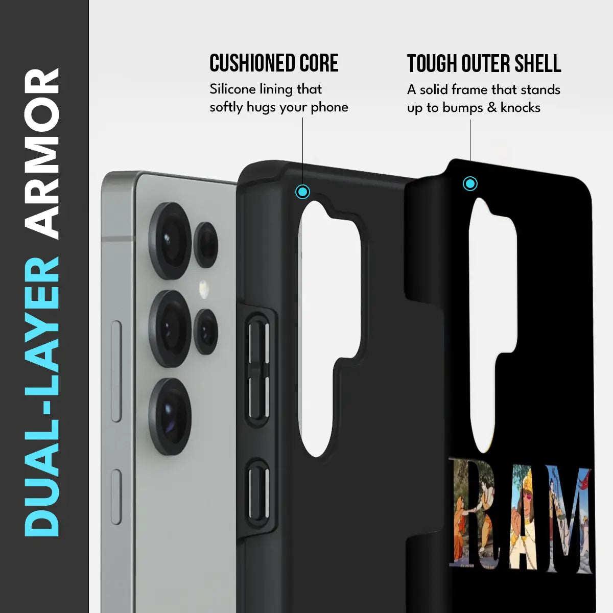 Featuring beautifully illustrated Ram imagery encapsulated within bold typography, this case turns your phone into a statement of faith and strength. The deep black backdrop enhances the vibrant artwork, creating a striking contrast that draws attention instantly.