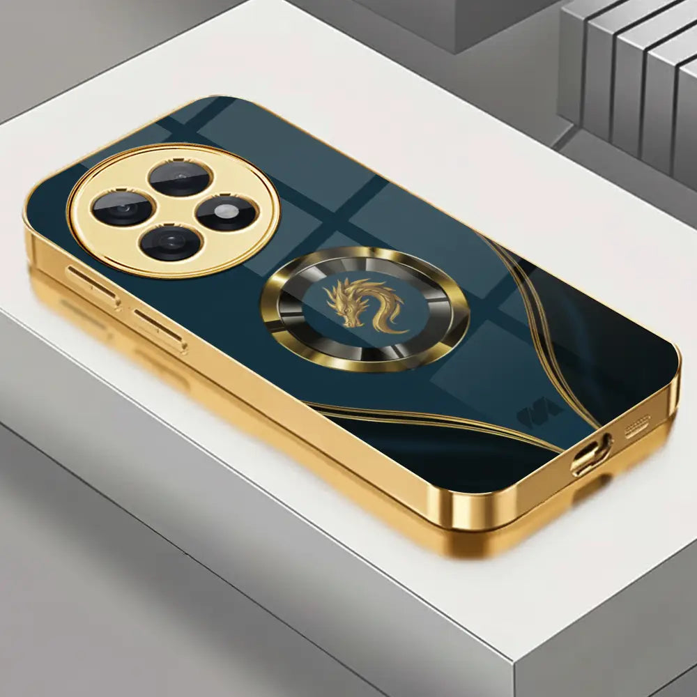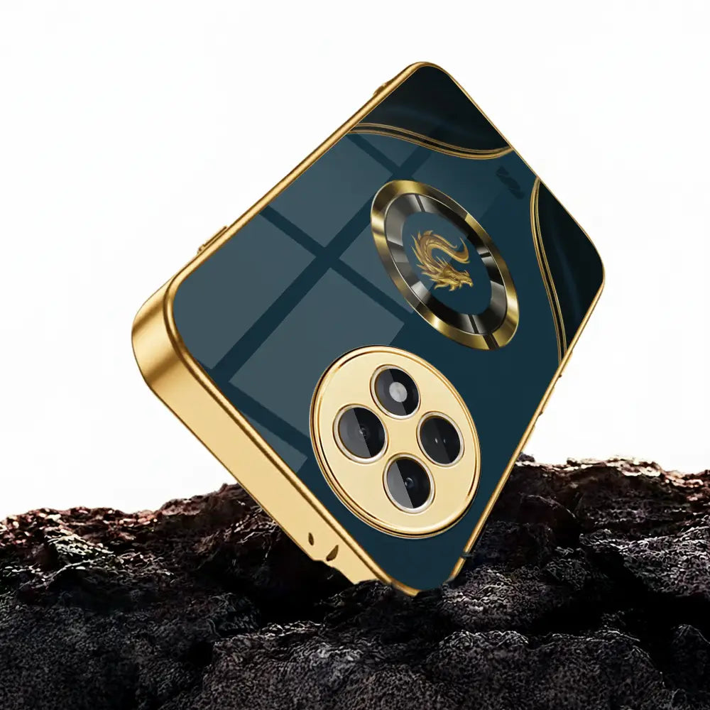 Strike a balance between myth and modern. The Draconic Crest case pairs a deep teal satin panel with a polished gold frame and a bold, medallion-style dragon emblem. Flowing metallic inlays guide the eye to the centerpiece while a rigid back and shock-cushion bumper quietly handle the daily knocks. Slim, grippy, and wireless-ready, it delivers statement luxury without giving up protection.