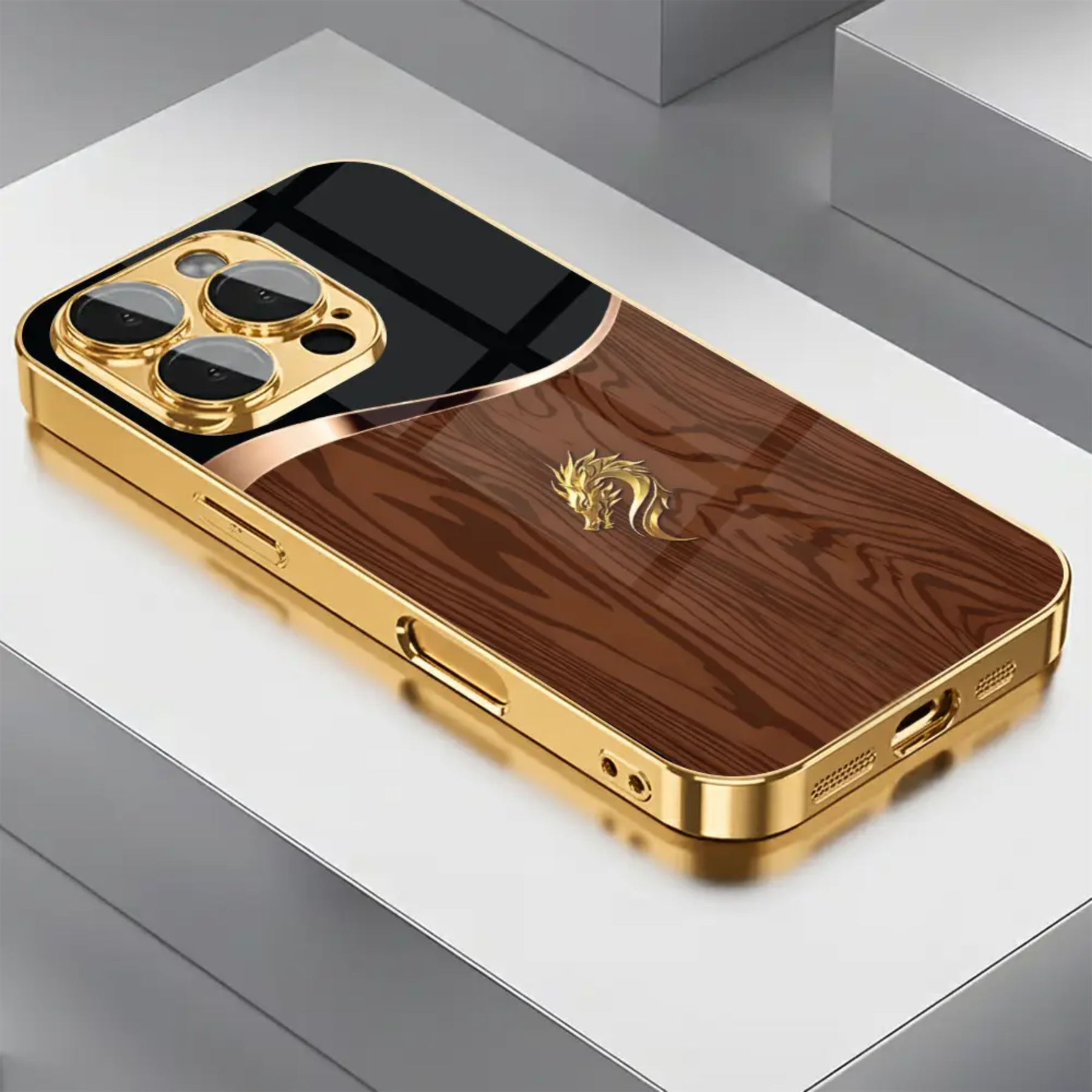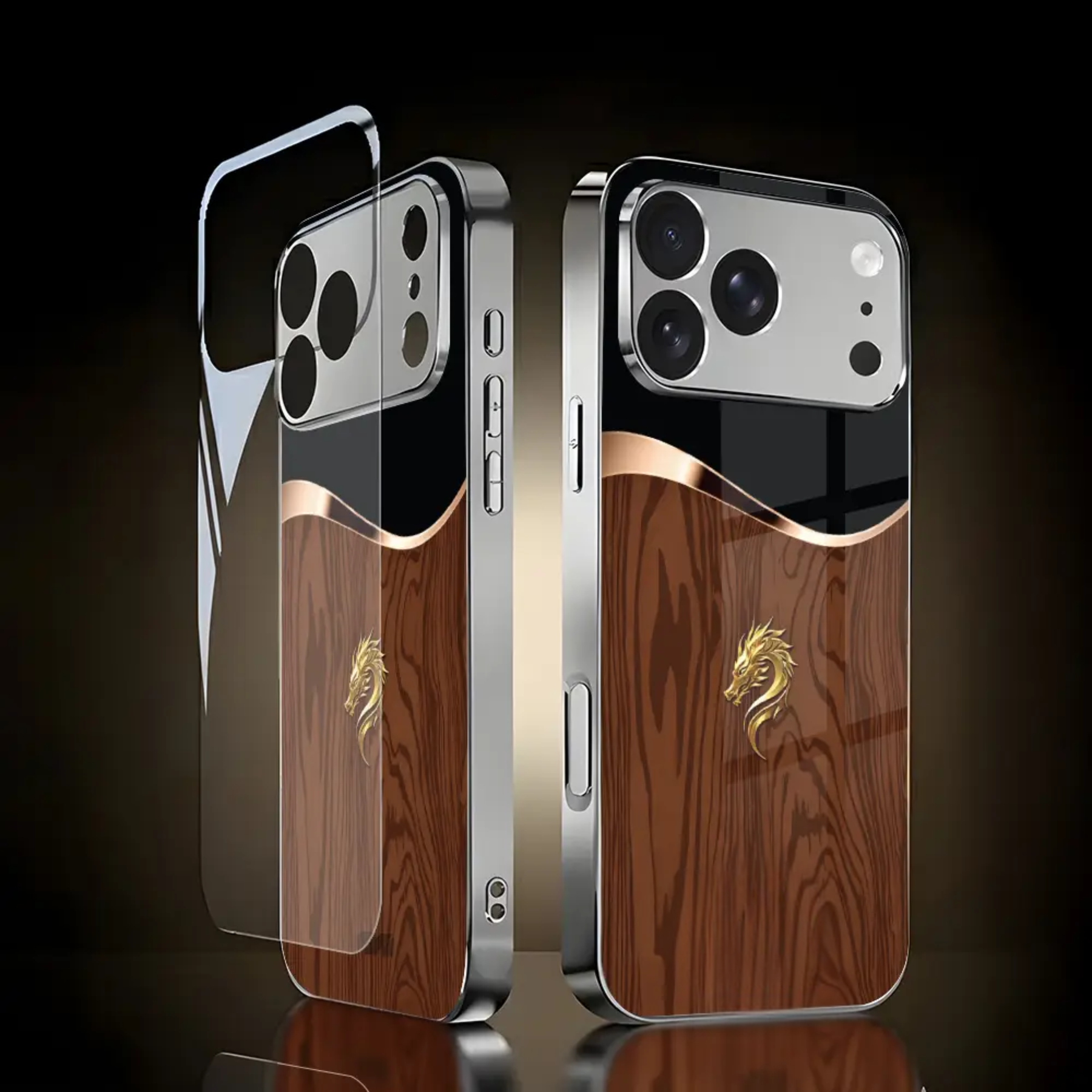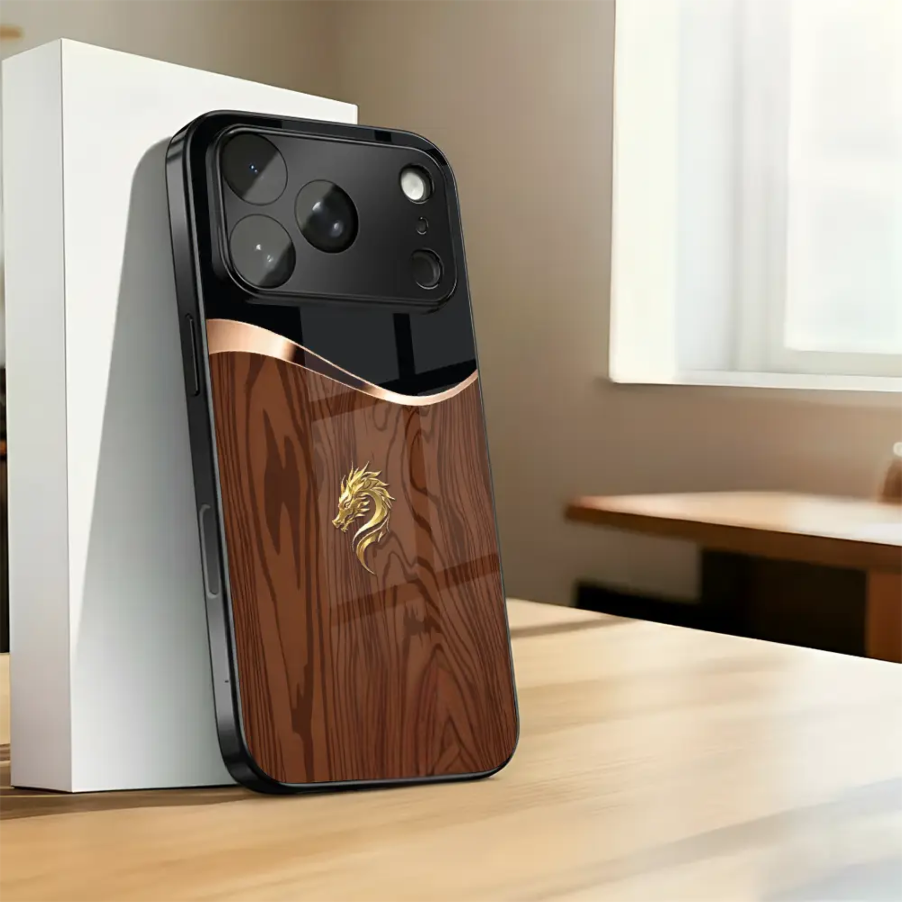 The Dynasty Dragonwood case fuses ancient power with modern luxury, featuring a deep wood-grain finish crowned by a striking golden dragon emblem. Inspired by imperial craftsmanship, this design symbolizes strength, prosperity, and timeless authority. The glossy surface enhances the rich tones of the wood texture, while the metallic dragon detail adds a bold, regal accent that commands attention.