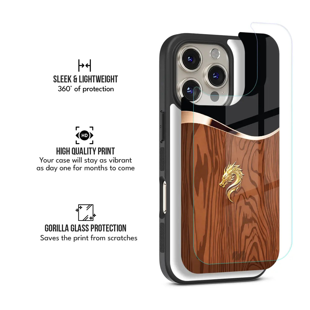 The Dynasty Dragonwood case fuses ancient power with modern luxury, featuring a deep wood-grain finish crowned by a striking golden dragon emblem. Inspired by imperial craftsmanship, this design symbolizes strength, prosperity, and timeless authority. The glossy surface enhances the rich tones of the wood texture, while the metallic dragon detail adds a bold, regal accent that commands attention.