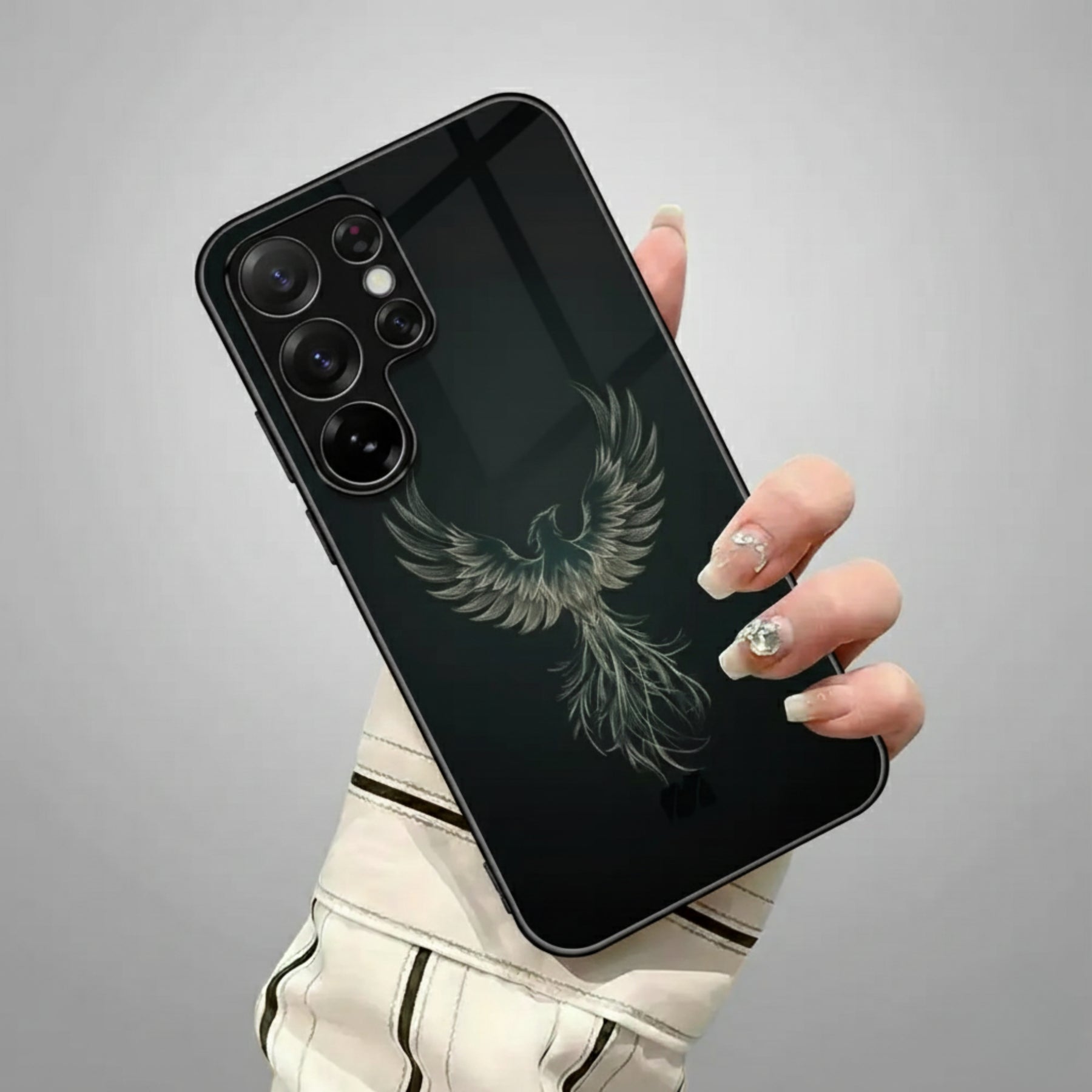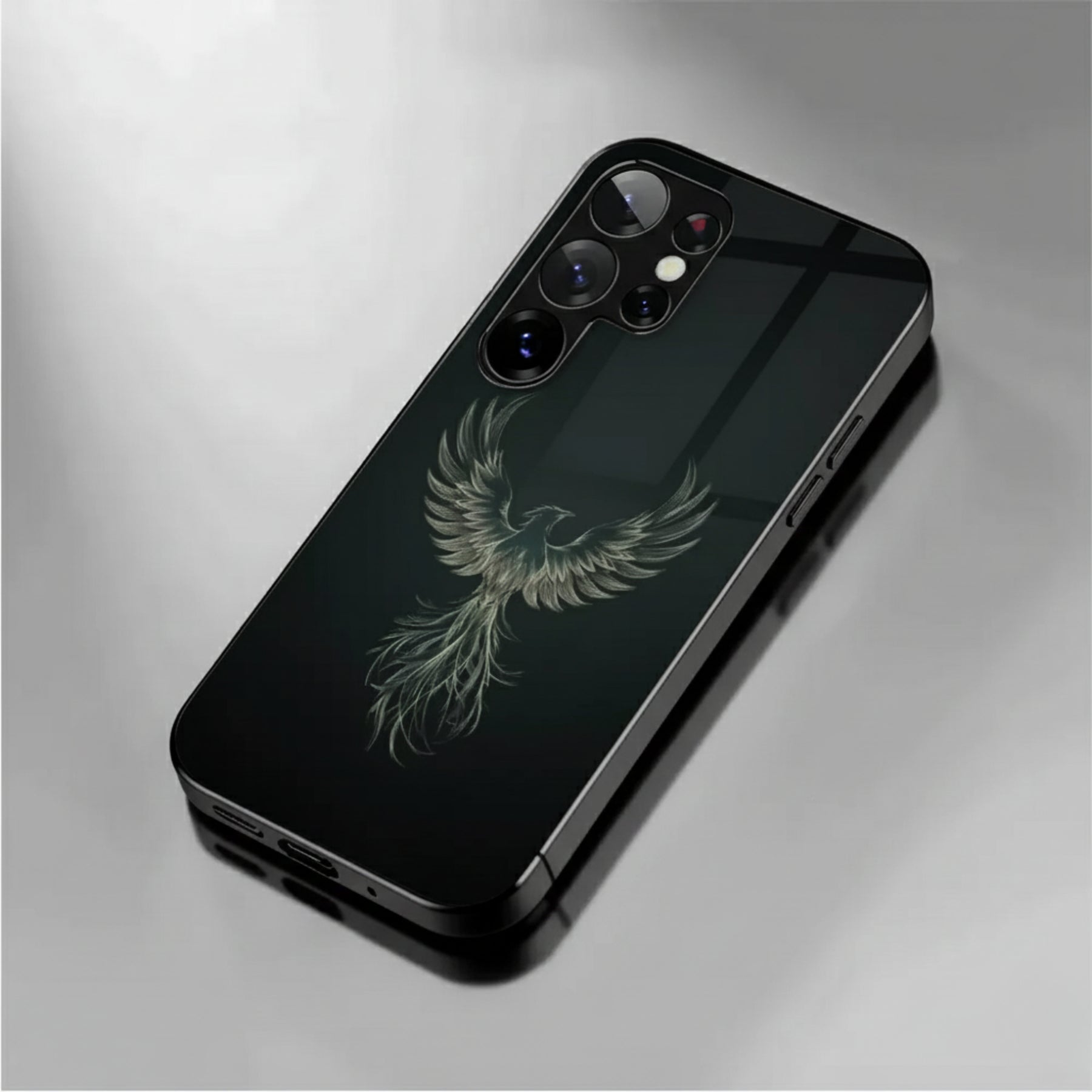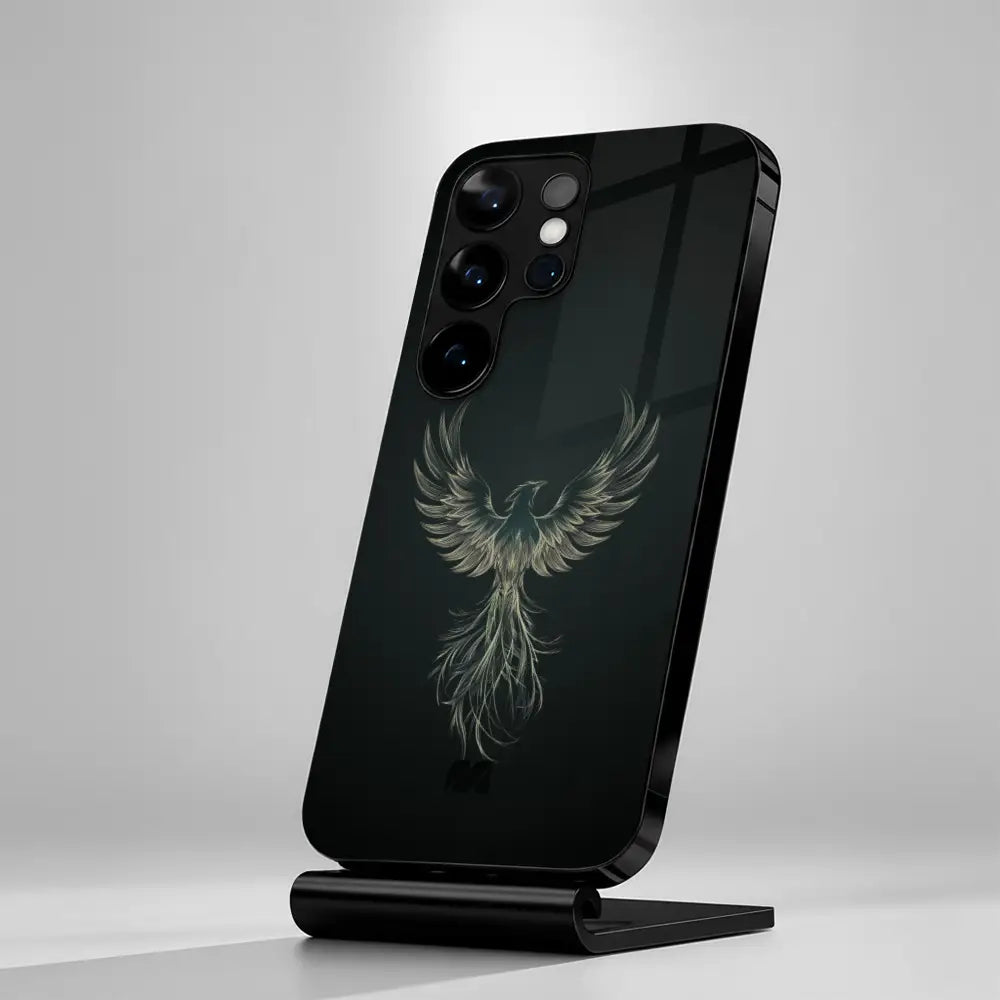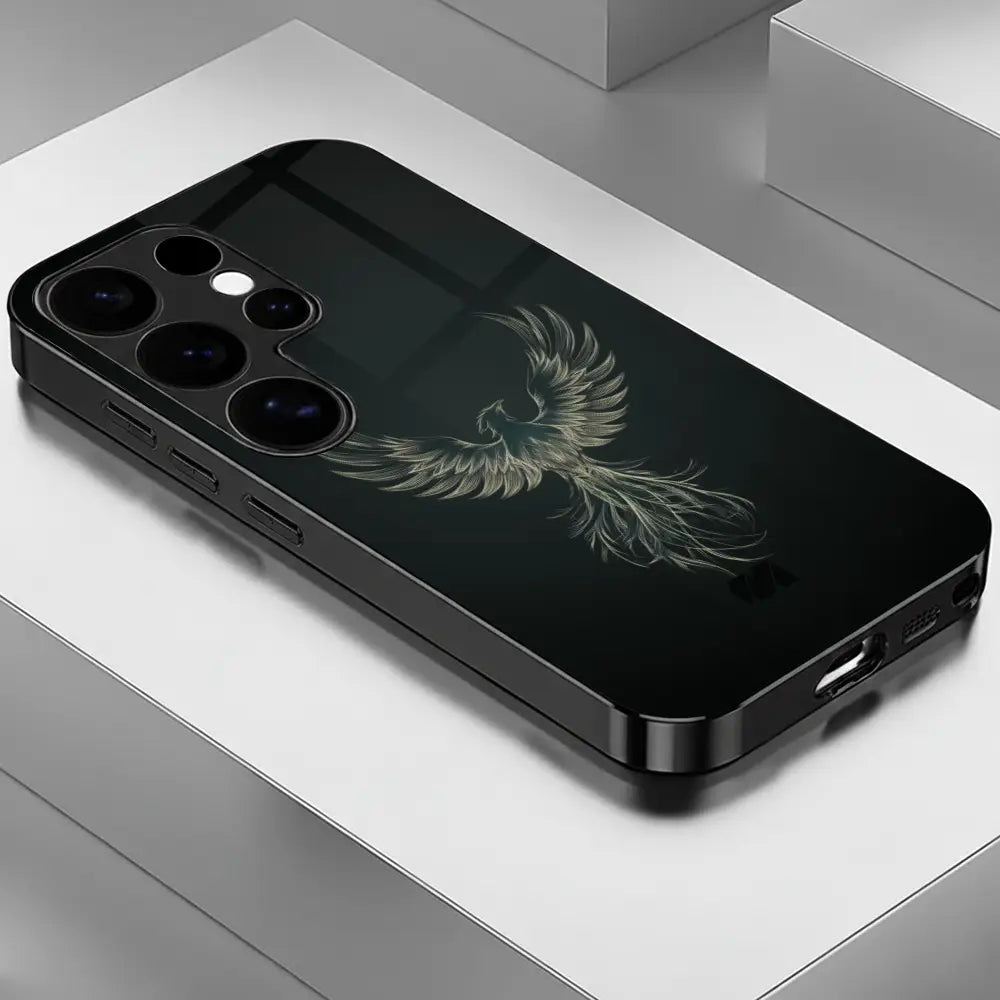 Ego Flight is a bold expression of self-mastery and elevation. Featuring a striking eagle in mid-ascension against a deep, obsidian backdrop, this case symbolizes confidence, independence, and power in motion. The minimalist dark finish enhances the luminous detailing, creating a refined look that commands attention without excess.