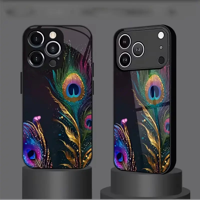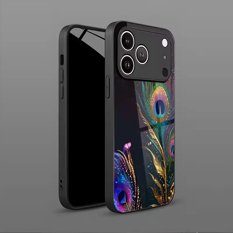 Elysian Quill Case embodies refined beauty and celestial elegance through a striking feather-inspired design. Iridescent plumes shimmer in rich hues of teal, violet, and gold, flowing across a deep, dark backdrop to create a look that feels both ethereal and luxurious.