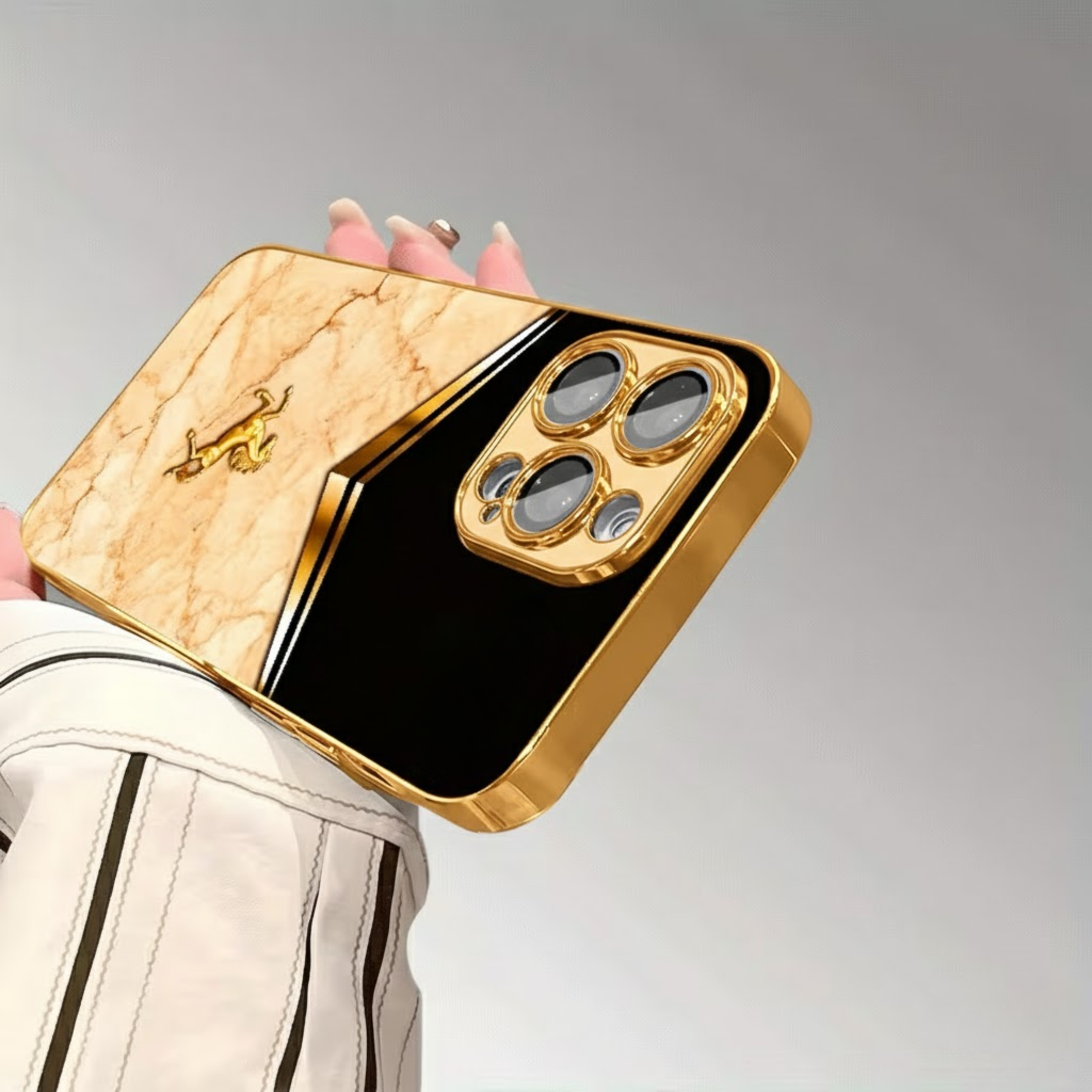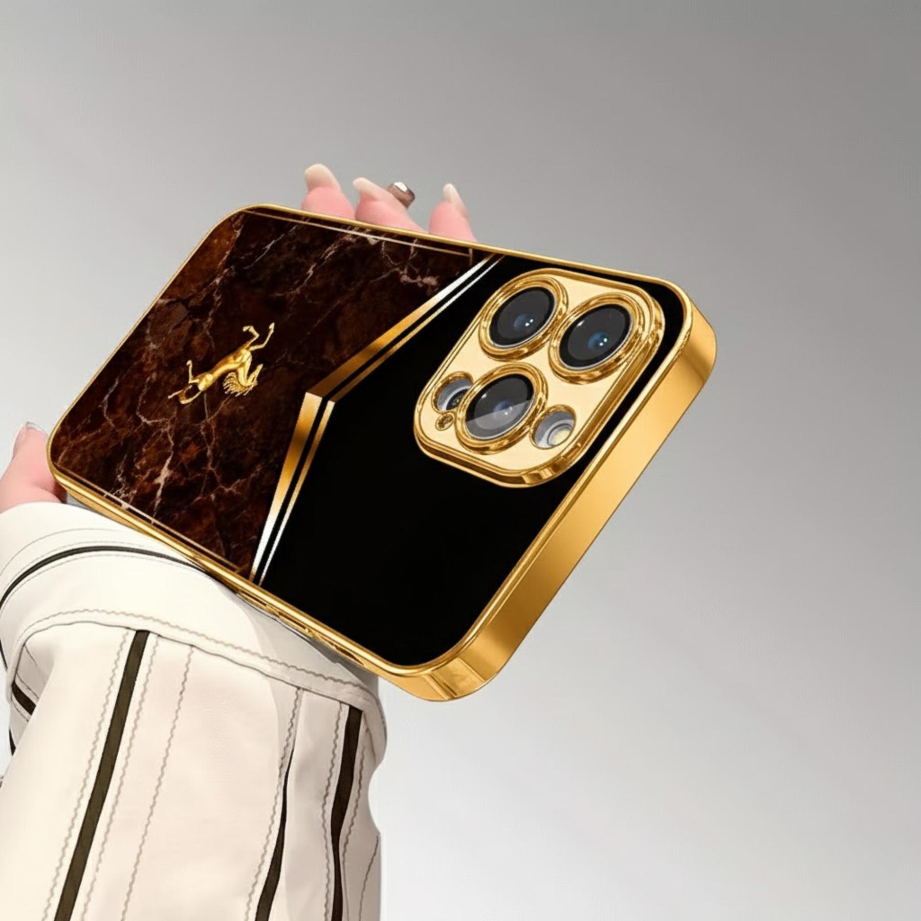 Command attention with the Emperor’s Marble Case, a masterpiece of luxury crafted for those who embrace power and prestige. This striking design blends polished black enamel with a regal marble finish, accented by a radiant gold frame and matching lion emblem—symbolizing strength, confidence, and elite sophistication.