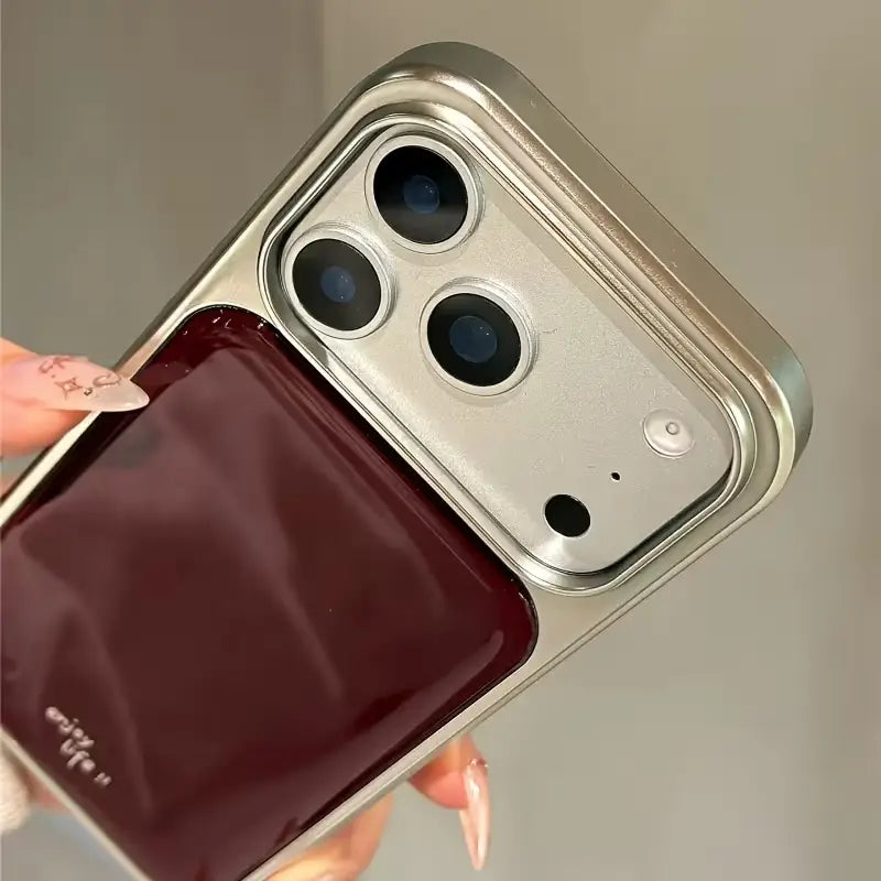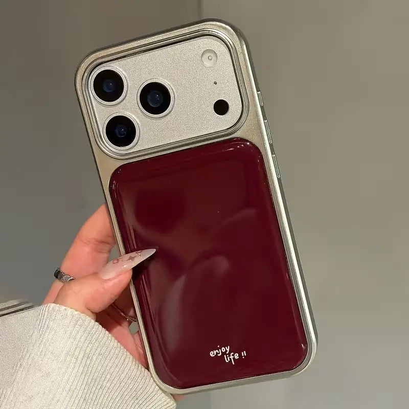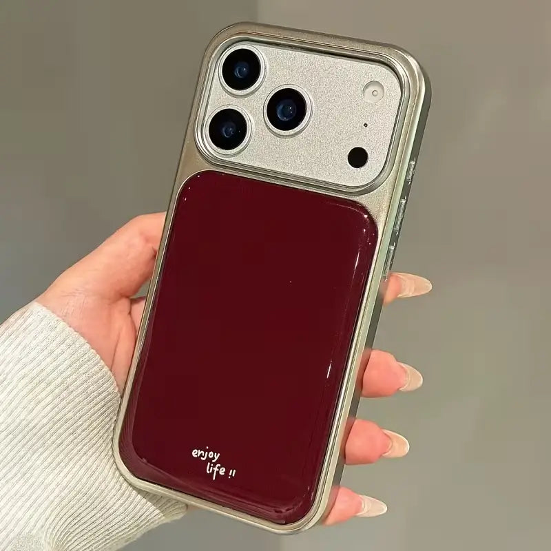 Simple, positive, and effortlessly stylish, Enjoy Life is designed to bring a gentle reminder of joy into your everyday routine. Featuring a deep wine-red glossy panel paired with a sleek, transparent frame, this case blends modern minimalism with warm elegance.