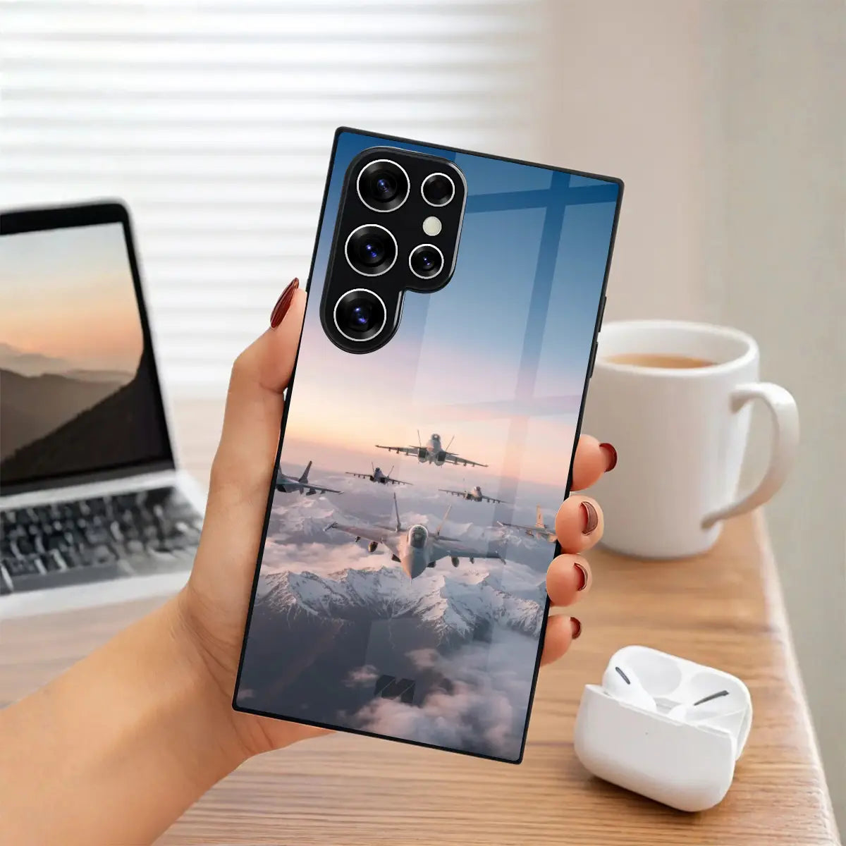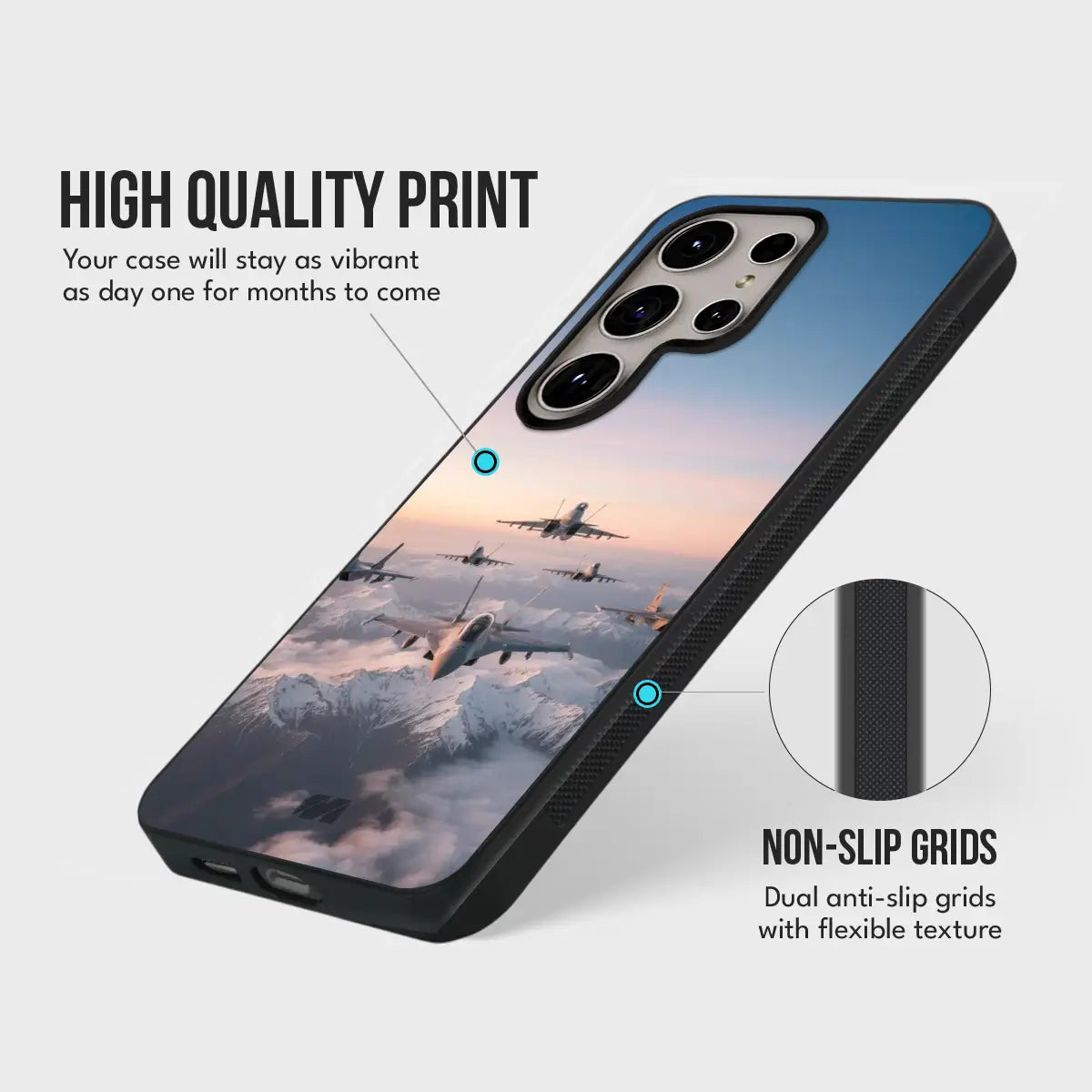The Formation Force Case captures the raw power of unity in motion. Featuring a striking aerial formation soaring above the clouds, this design symbolizes precision, teamwork, and unstoppable momentum. Crafted with a sleek, high-gloss finish.
