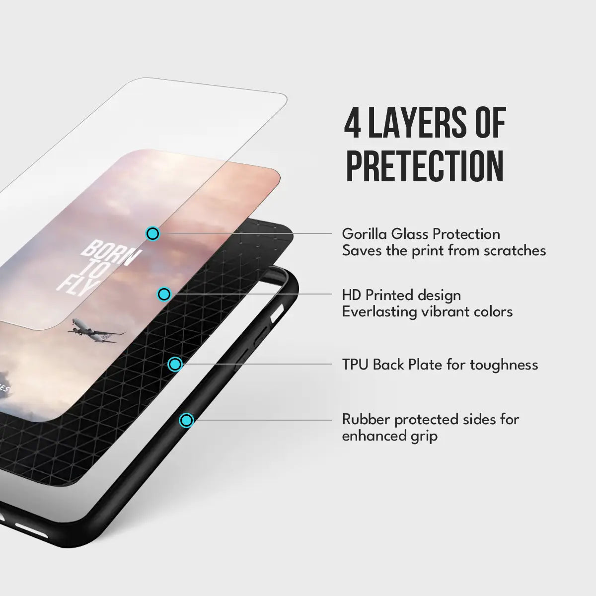 - TPU Back Plate – Tough yet flexible layer for shock absorption.