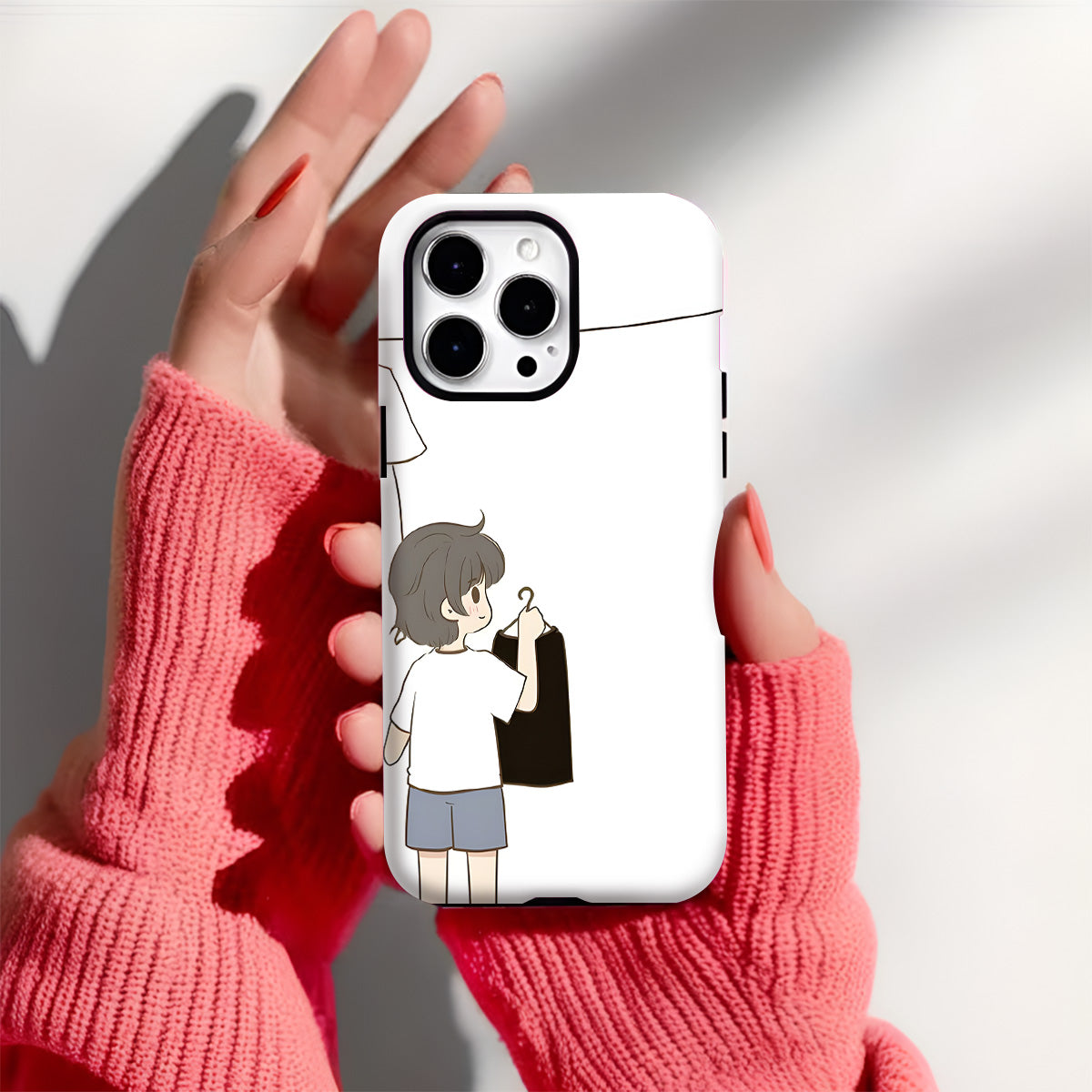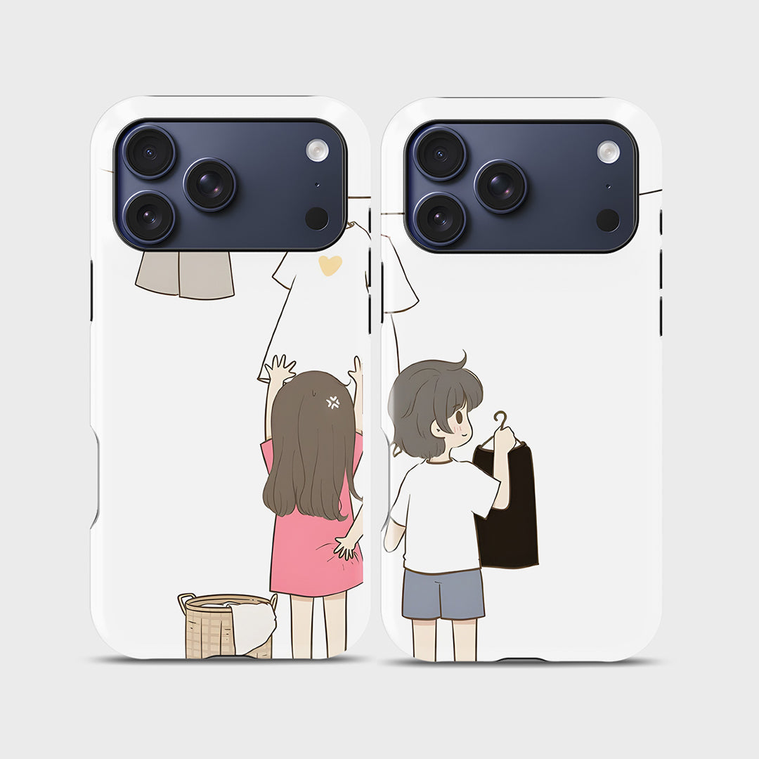 Hanging Hearts captures a quiet, playful scene of affection—one reaching up, the other choosing carefully—connected by a tiny heart in between. The minimalist illustration tells a sweet story of everyday love, where care is shown not in grand gestures, but in thoughtful acts.