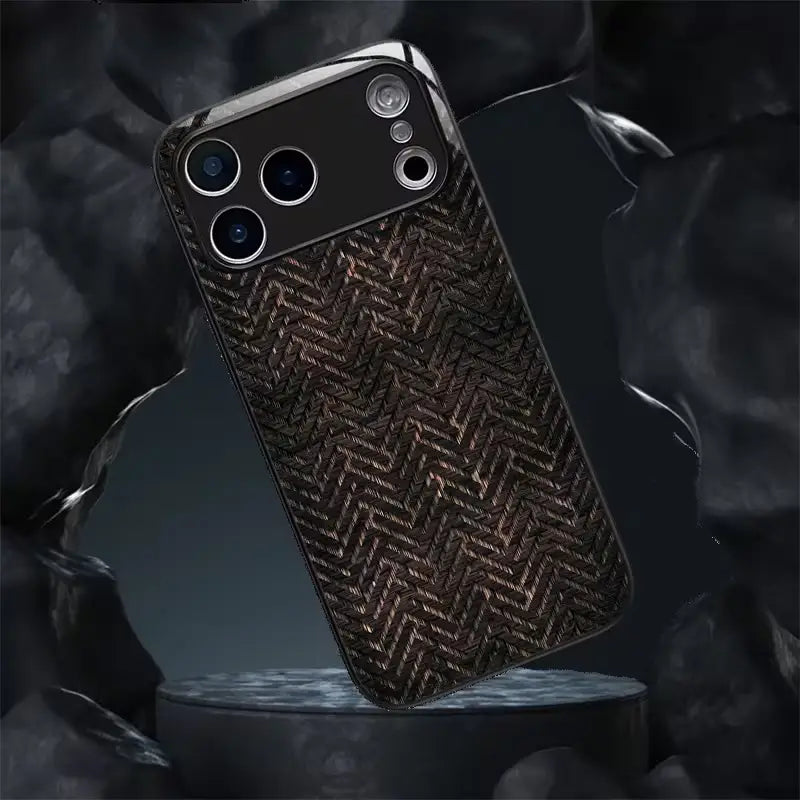 Herringbone Weft Case is crafted for those who appreciate understated luxury and refined texture. Featuring a deep, woven herringbone pattern, this case blends classic craftsmanship with a modern, stealth-inspired aesthetic. The dark, tactile finish delivers a confident, premium look while remaining subtle and versatile for everyday carry.
