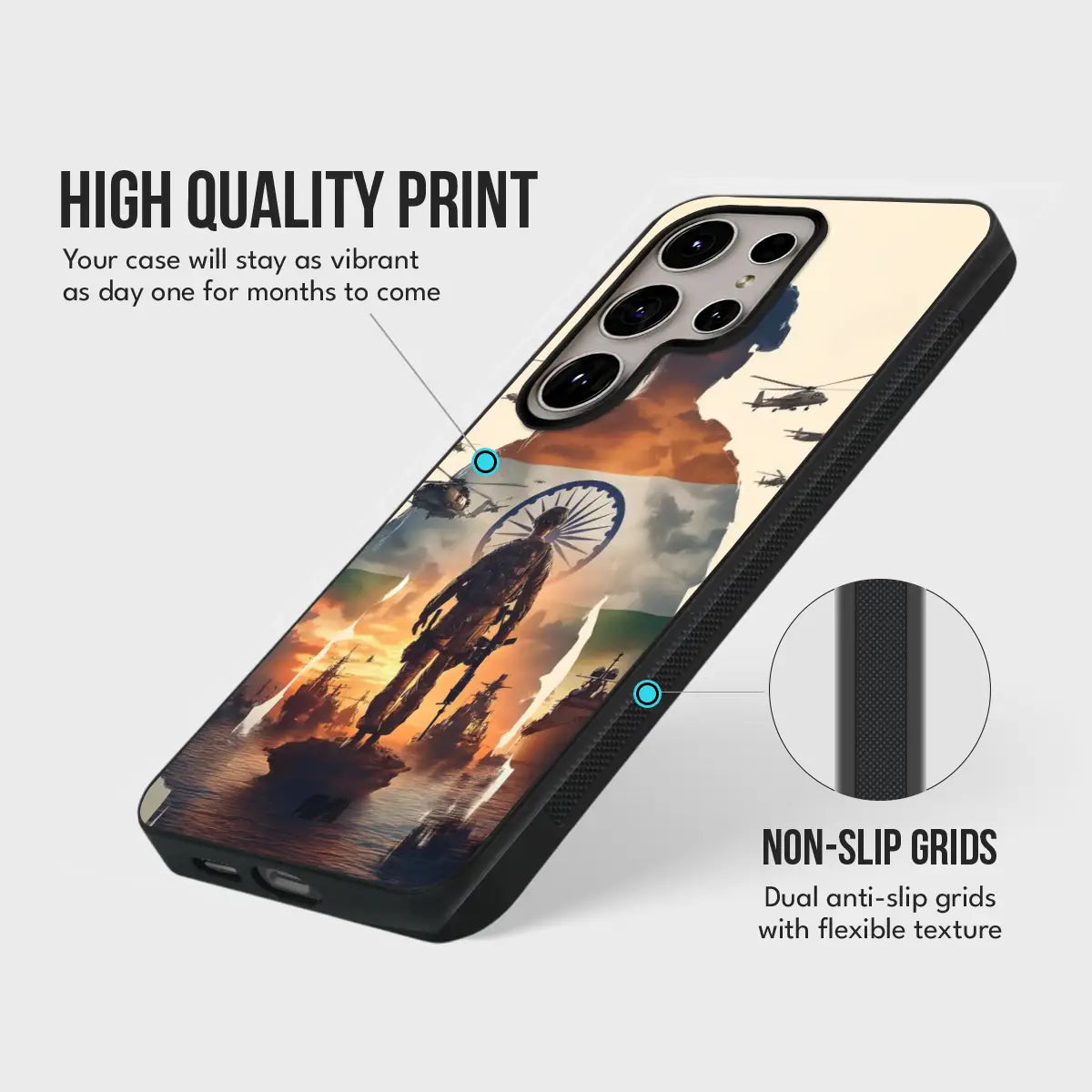 The Homeland Warriors phone case is a powerful tribute to the brave souls who stand watch over the nation’s freedom. Showcasing a striking blend of the tricolor, armed forces silhouettes, and dynamic battle-ready visuals, this design embodies courage, sacrifice, and unwavering patriotism. It honors those who protect the land, sea, and sky with relentless dedication.