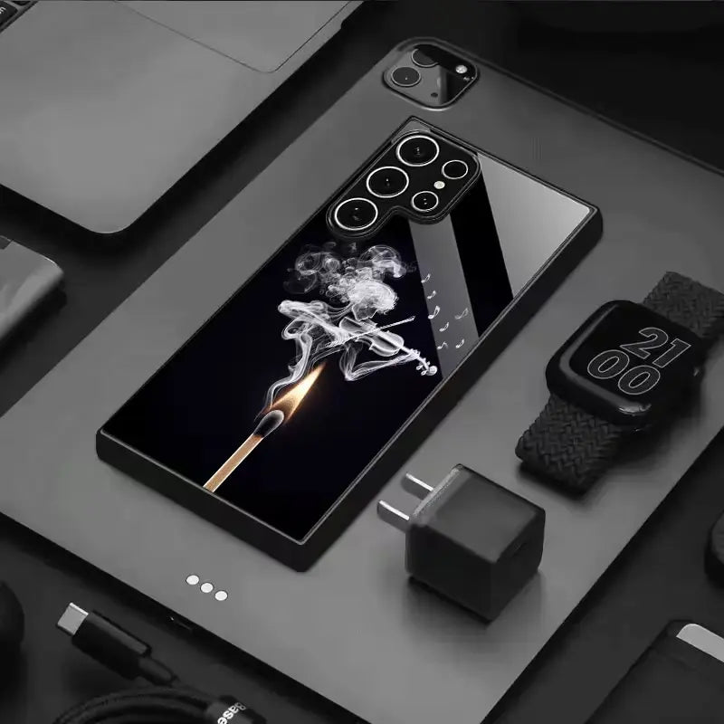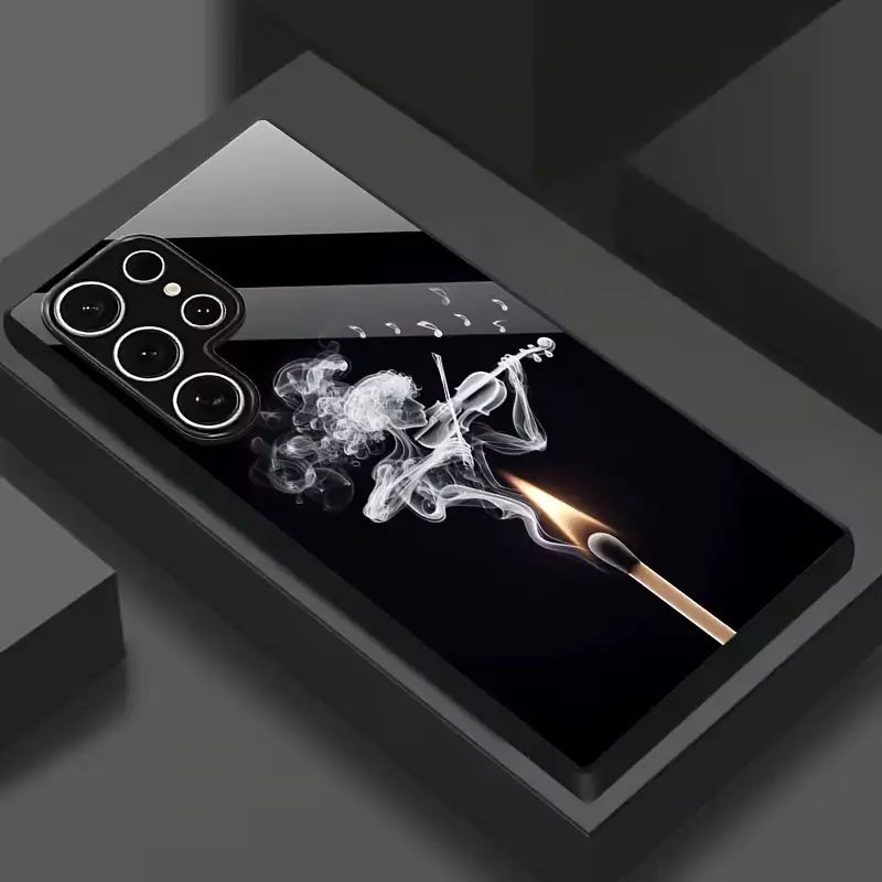 The Ignite Melody Case captures the poetry of sound and flame in a striking visual statement. Featuring an artistic fusion of a burning match transforming into a flowing musical figure, this case symbolizes passion, creativity, and rhythm coming to life.