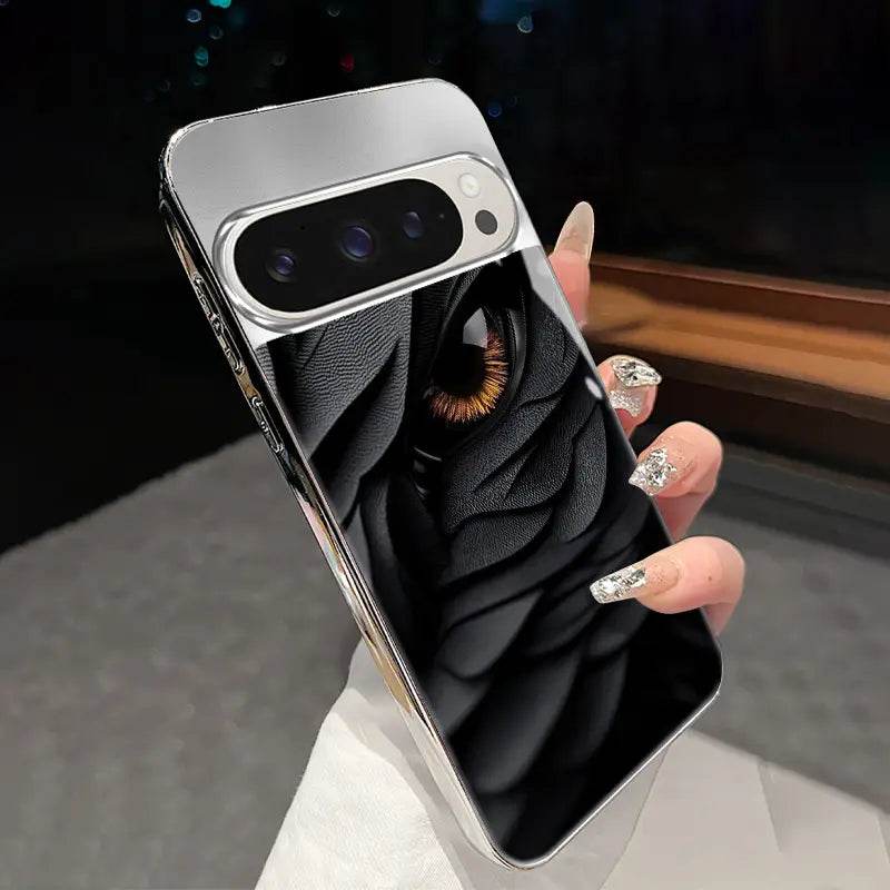 Make every glance unforgettable. Inferno Eye Regalia sets a mirror-black backdrop behind a lifelike ember iris peering through sculpted, shadowy scales—bold, mysterious, and undeniably luxe. Polished chrome-look edges elevate the design while the slim build keeps protection on point.
