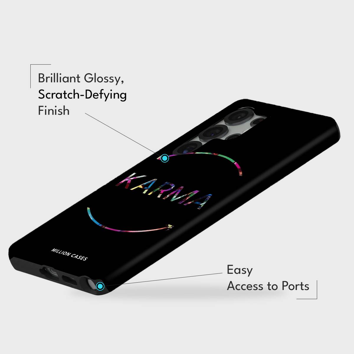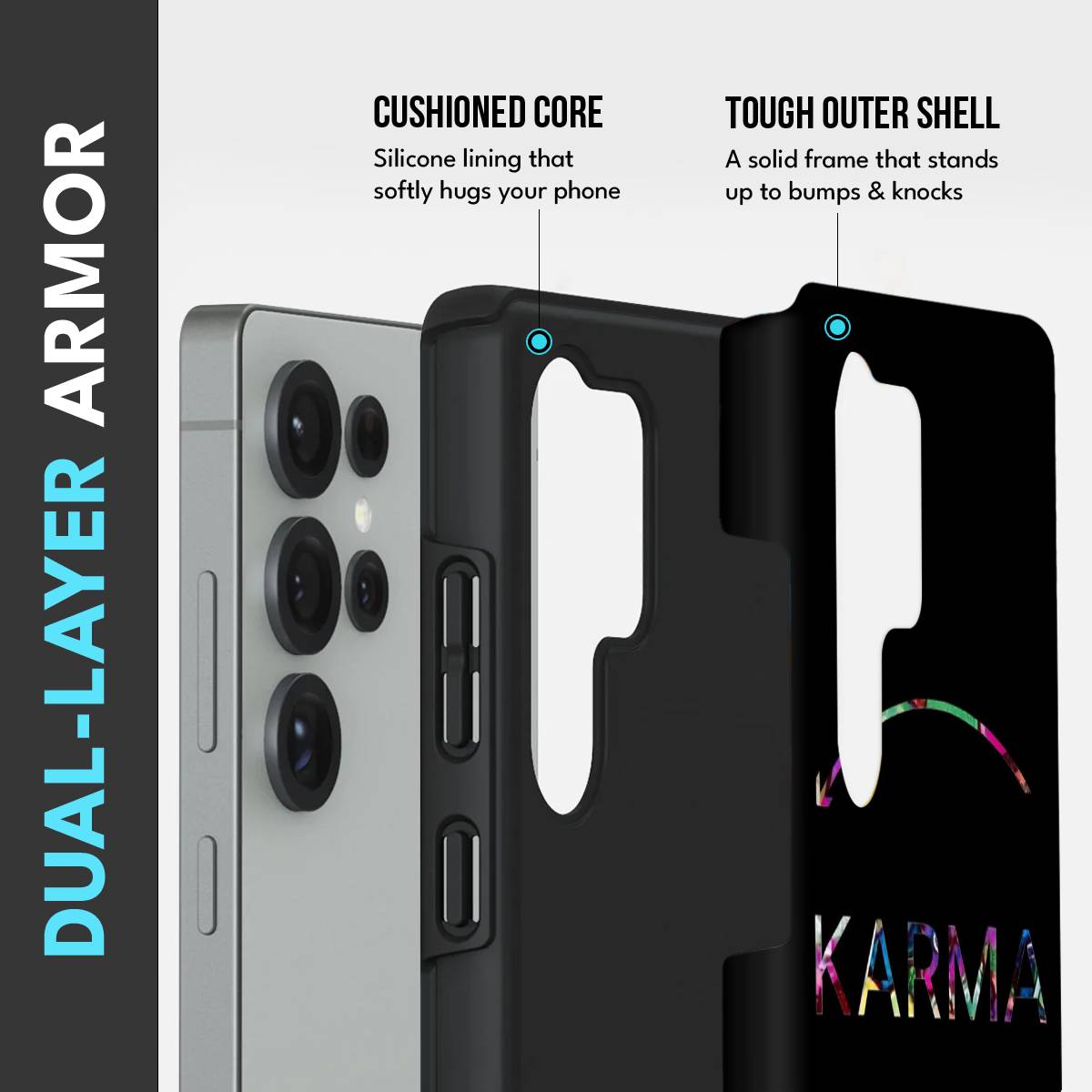 Embrace the energy you carry with the Karma Cycle Case, designed for those who believe every action sends ripples through the universe. Featuring a sleek black backdrop paired with a vibrant, multicolor “Karma” emblem and circular arrows, this case captures the perfect blend of style, meaning, and modern minimalism.