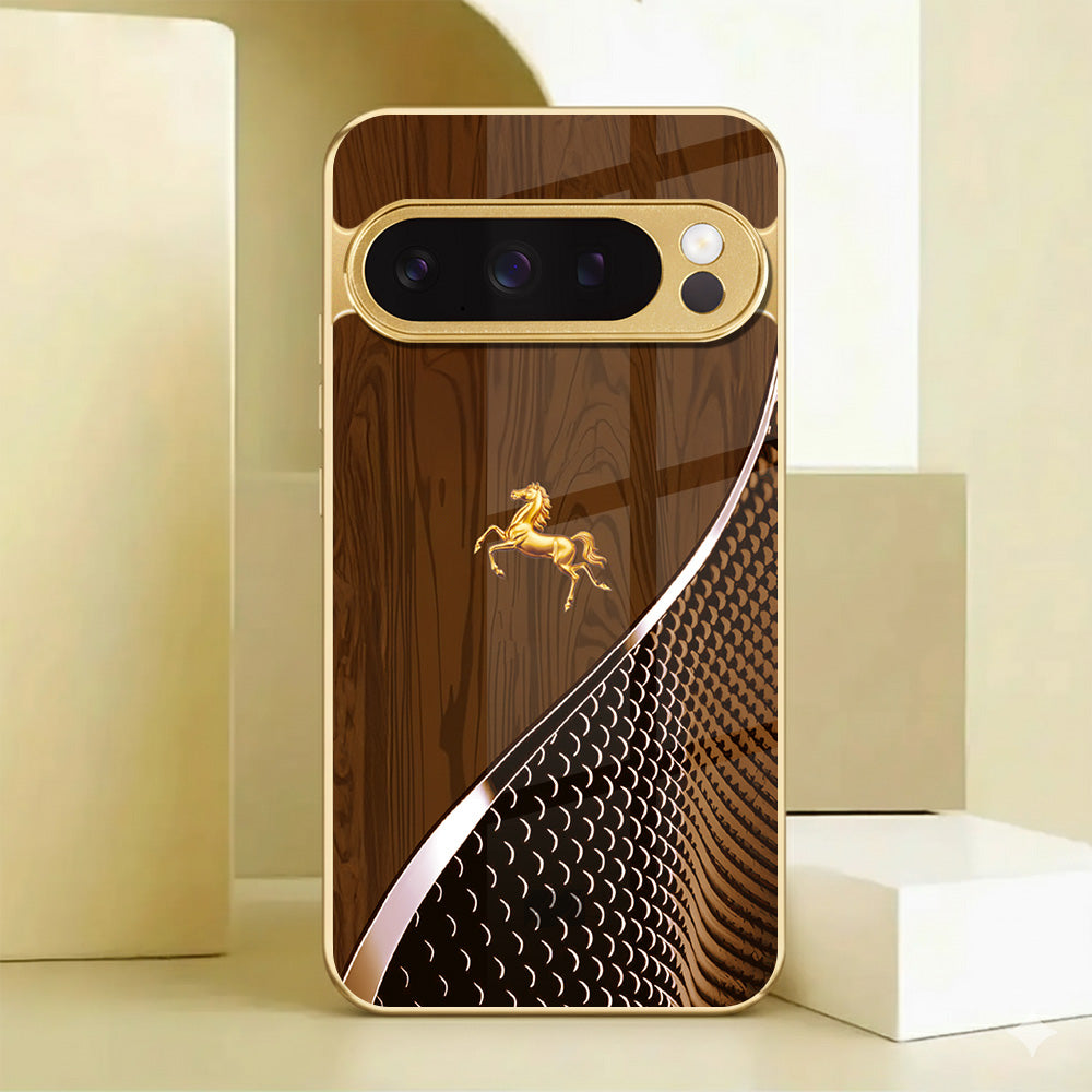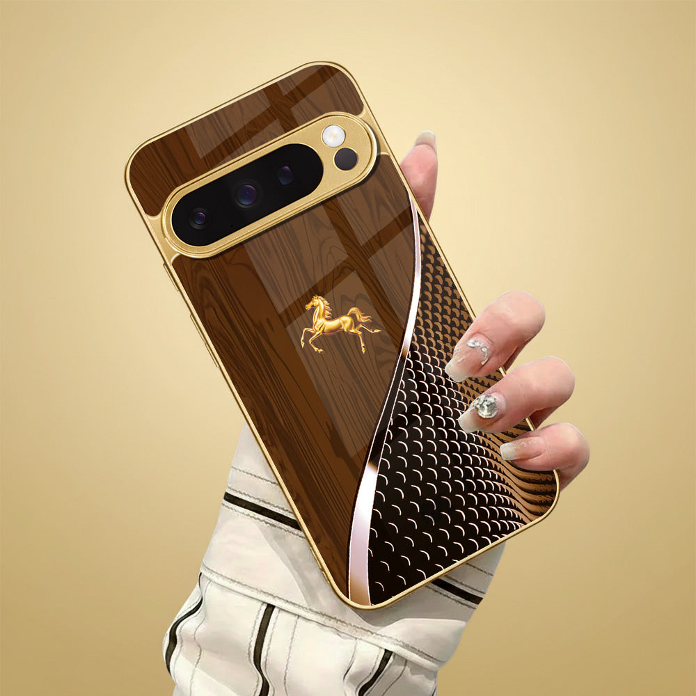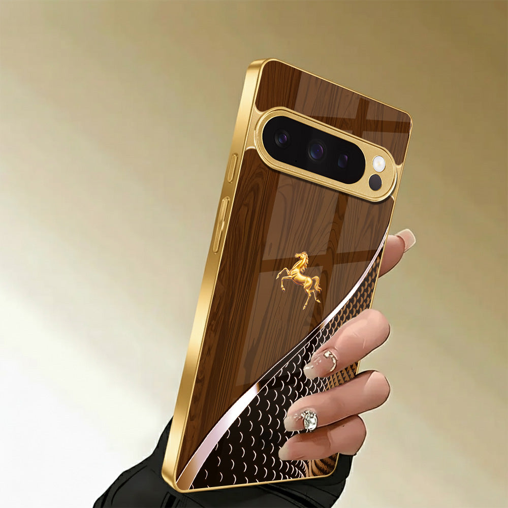 Bold, refined, and unmistakably regal, the King’s Courser Case draws inspiration from the strength and elegance of a noble steed in motion. The rich, wood-grain finish paired with a gleaming golden horse emblem creates a look that balances power with prestige.