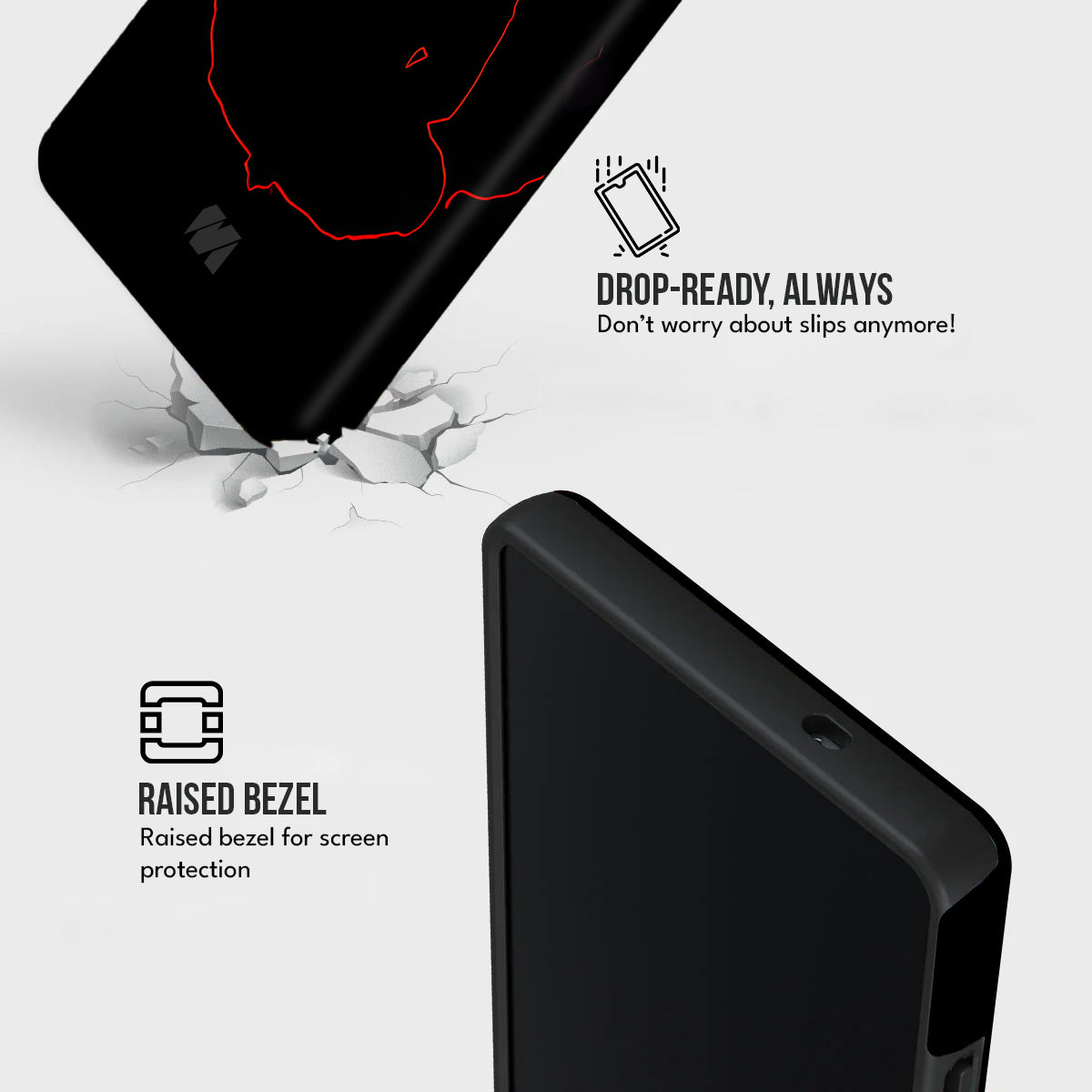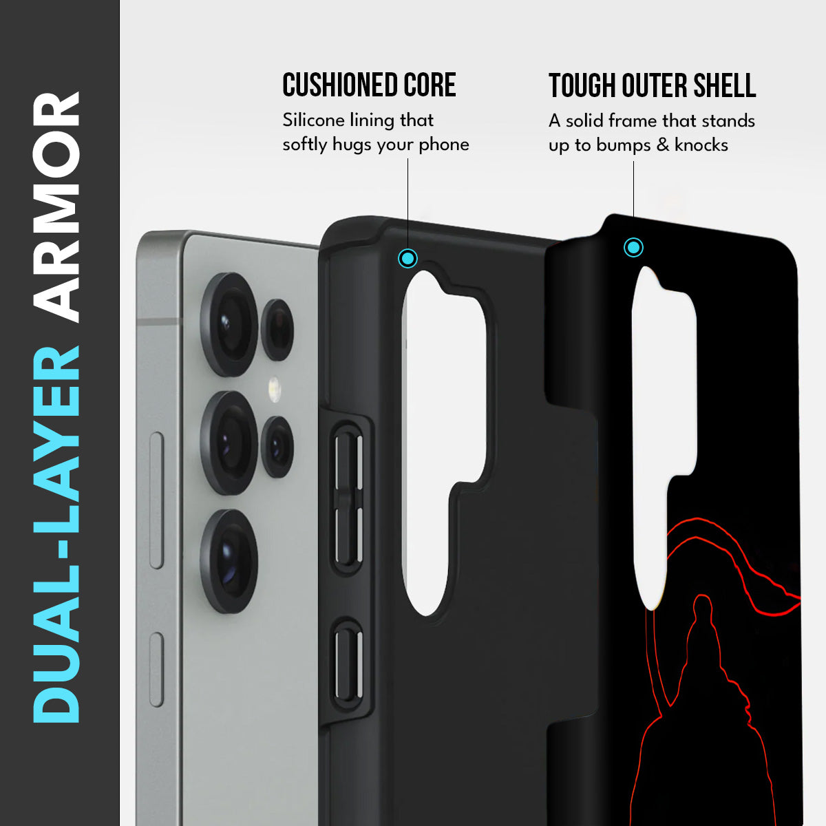The Meditative Force Case captures the calm, powerful essence of divine stillness. With its striking red outline of a seated figure—symbolizing discipline, balance, and spiritual strength—this case blends minimalism with deep symbolism.