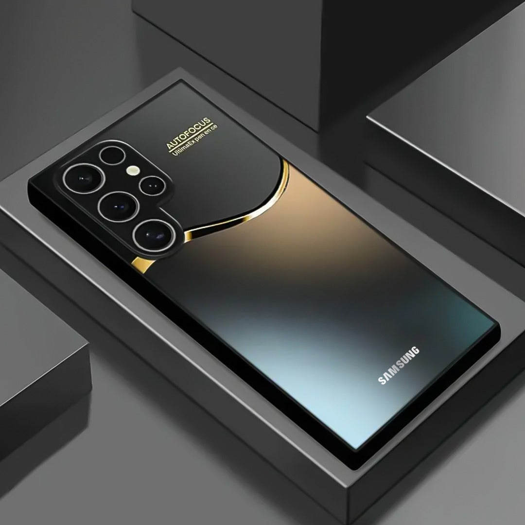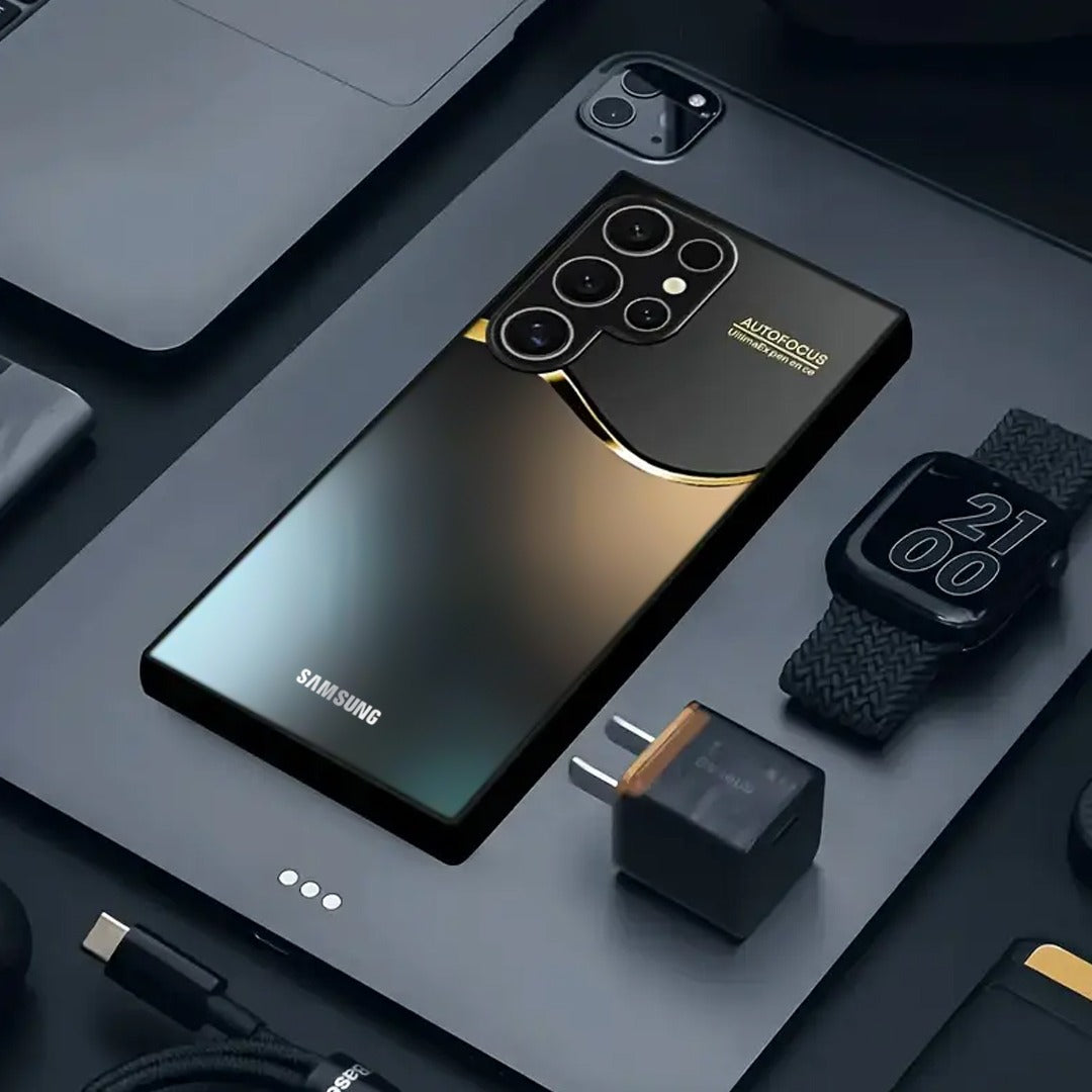Elevate your Phone with the Midnight Golden Accent Case, a true blend of sophistication and luxury. Designed with a deep matte black finish enhanced by a sleek golden wave accent, this case radiates elegance while offering everyday protection.